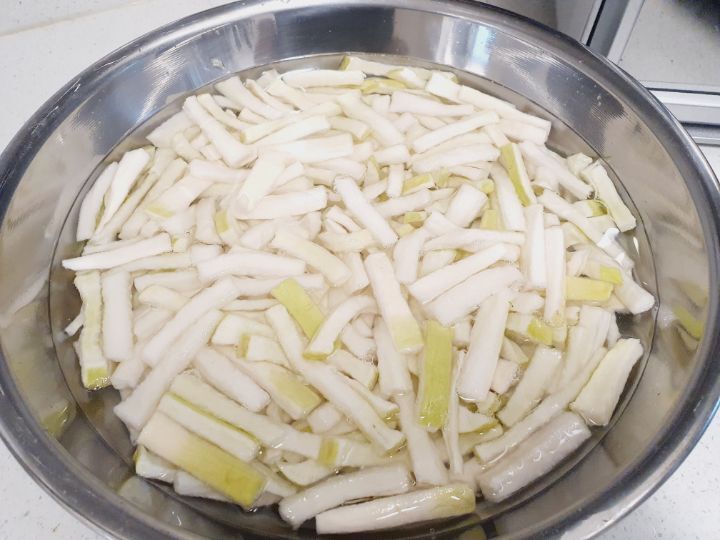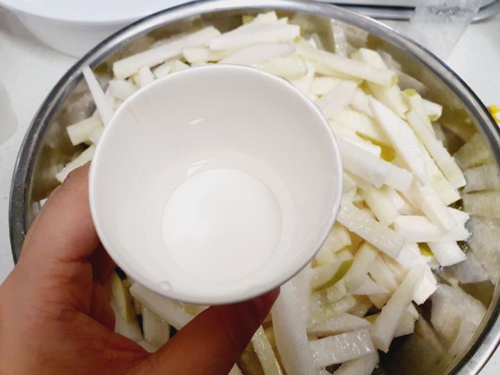 그래야 절여졌을때 무가 더 꼬들꼬들 해요