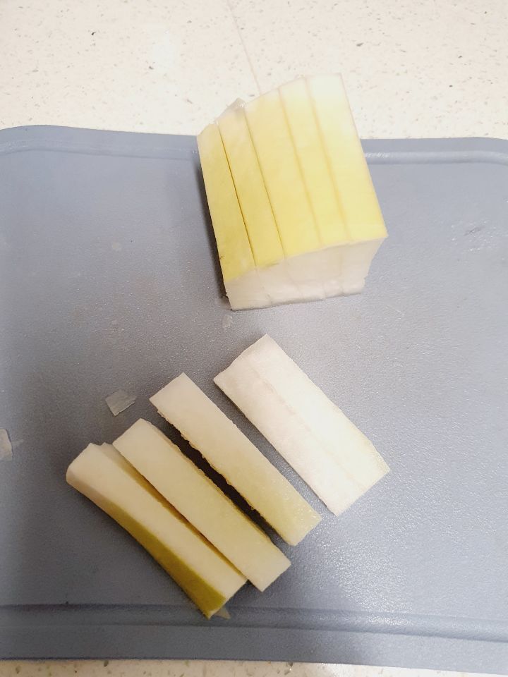 이렇게 길고 도톰하게 썰으셔도 되구요
