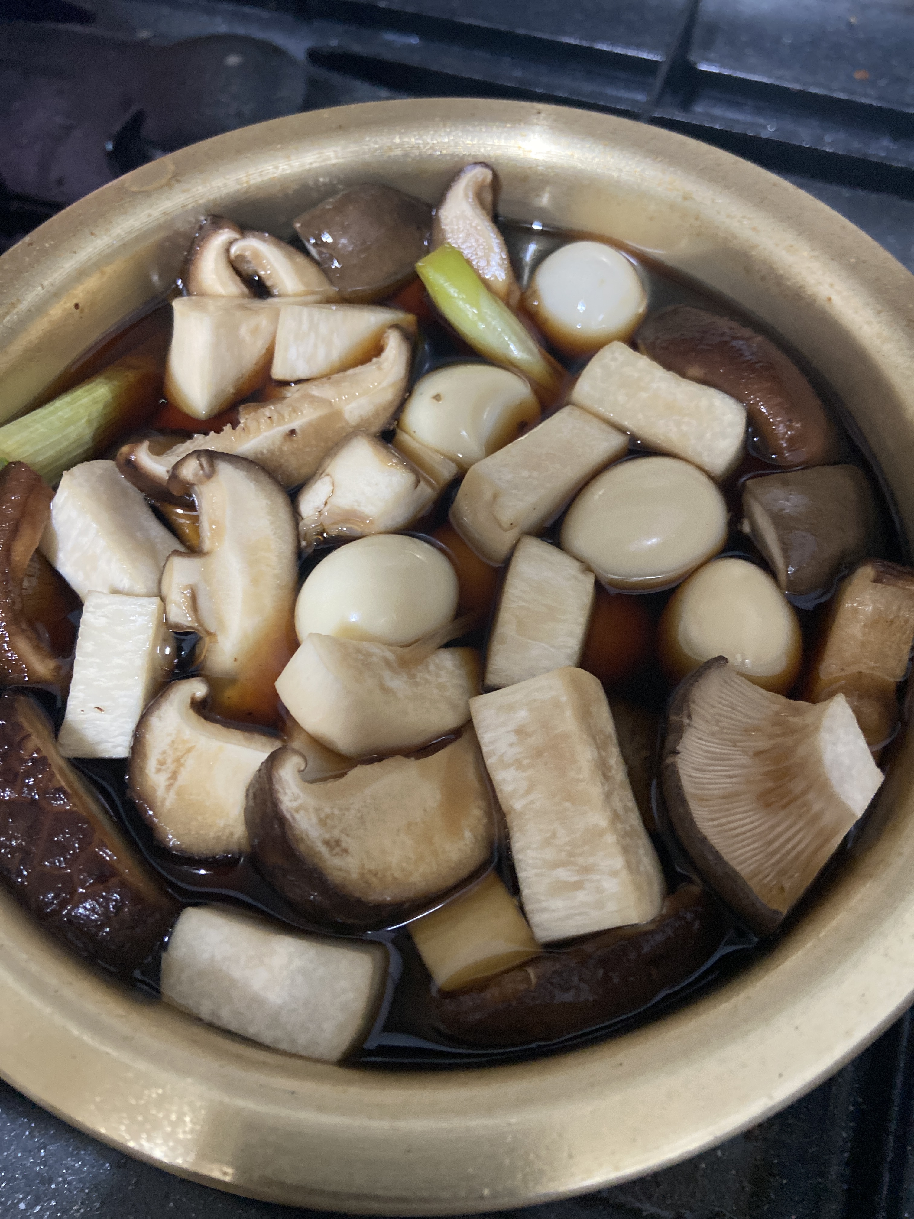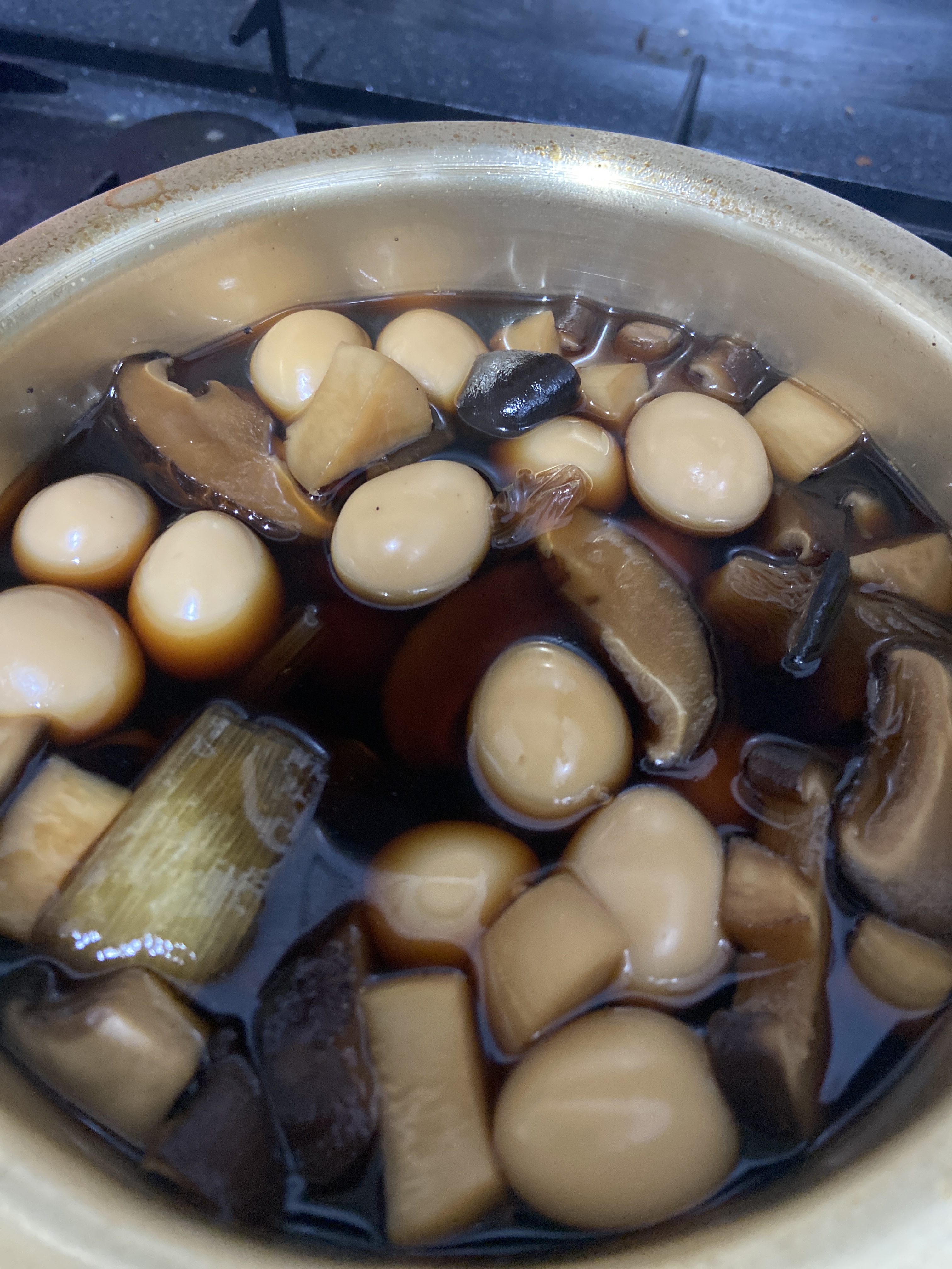 2. 끓는 간장에 메추리알 버섯 전부 다 넣고 또 끓여주면 끝 ,,,,,,