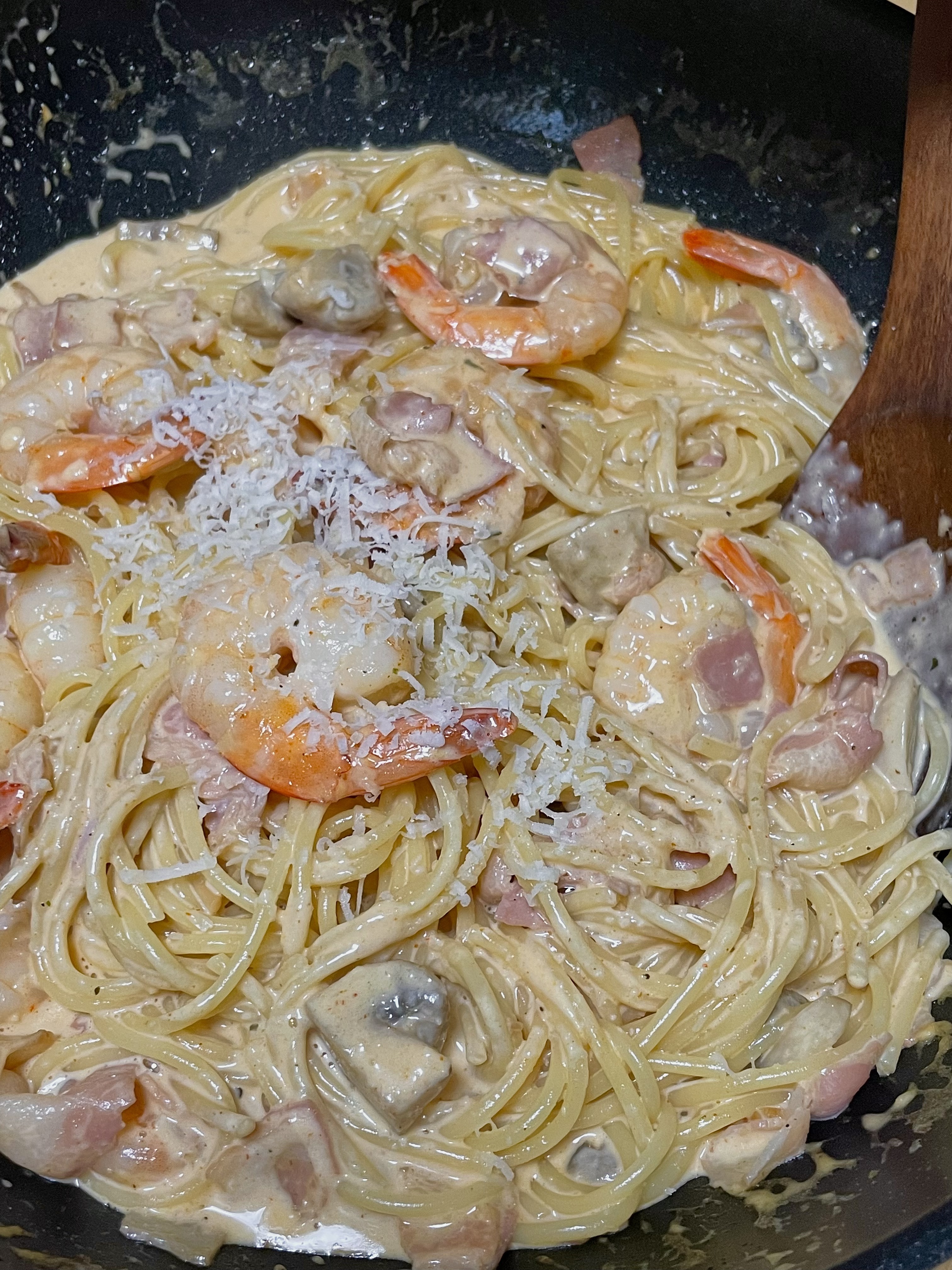버섯 없는데? 하면 새우랑 베이컨 뽀까버려