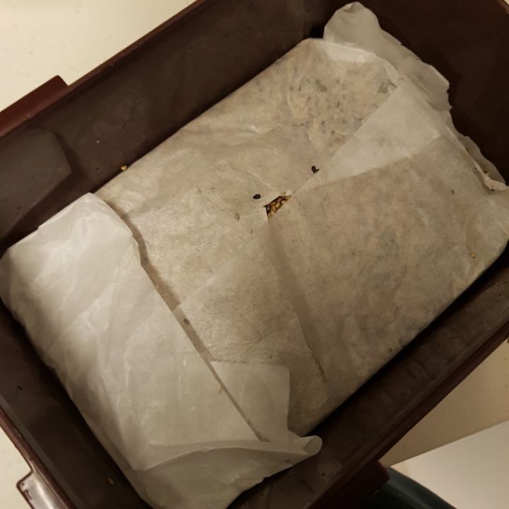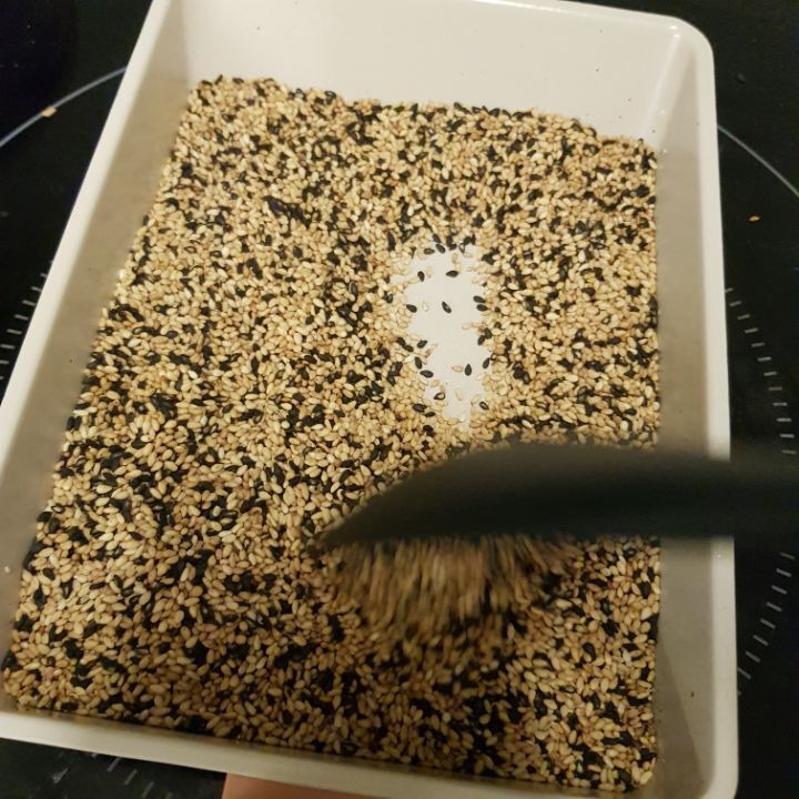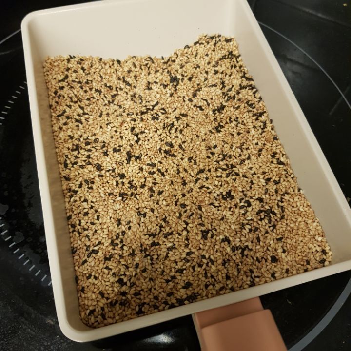 잠시 식혀두다가 열어보면 잘굳어서 종이호일에 깨가 묻어나오지 않음. 굳기전에 열면 깨붙어나옴. 기다려야함
