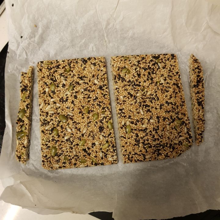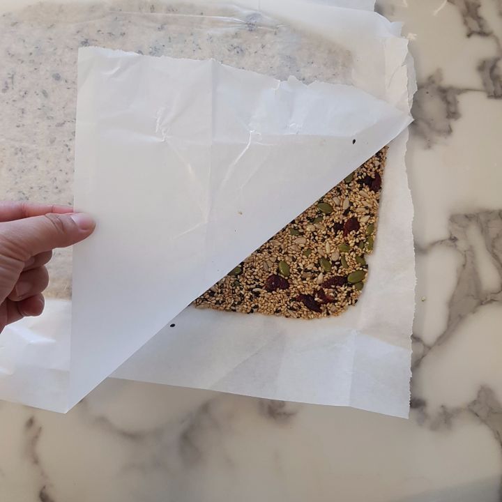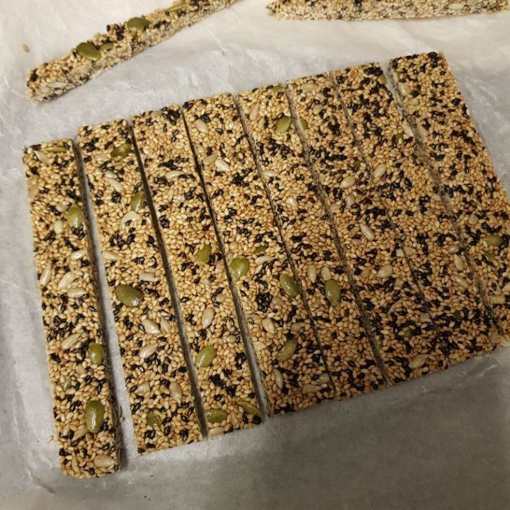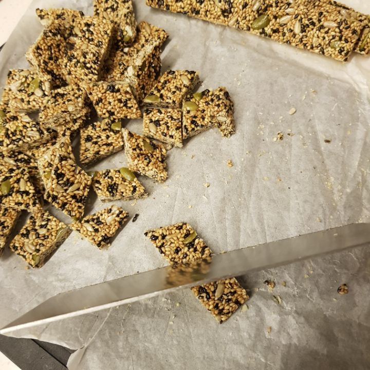 종이호일 깔고 그 위에 깨강정, 종이호일 다시 덮고 밀대로 미는게 훨씬 얇게 잘됐어. 근데 틀이없어서 모양이 네모낳게는 잘안됨ㅎㅎ