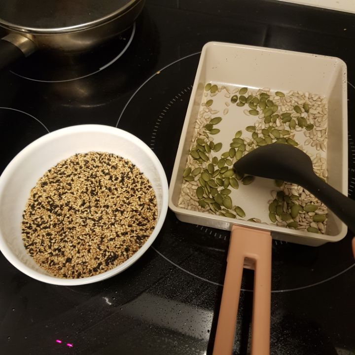 나는 참깨검은깨 섞었고 견과류는 호박씨 해바라기씨 씀. 없는사람들은 깨만 2종이컵!!!