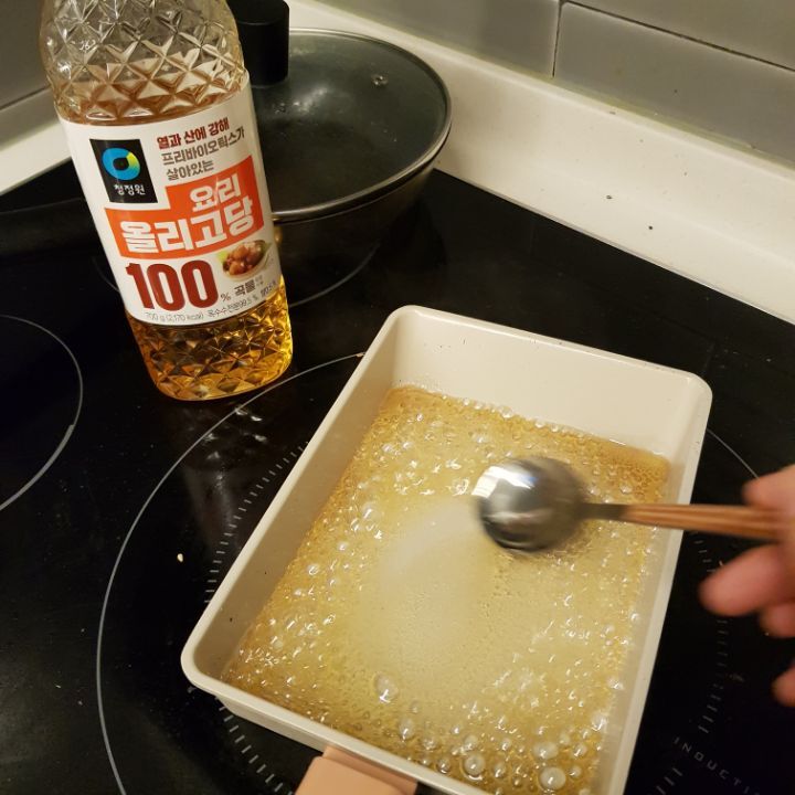 올리고당 설탕물이 잘섞였고 부글 끓어오를 때 쯤