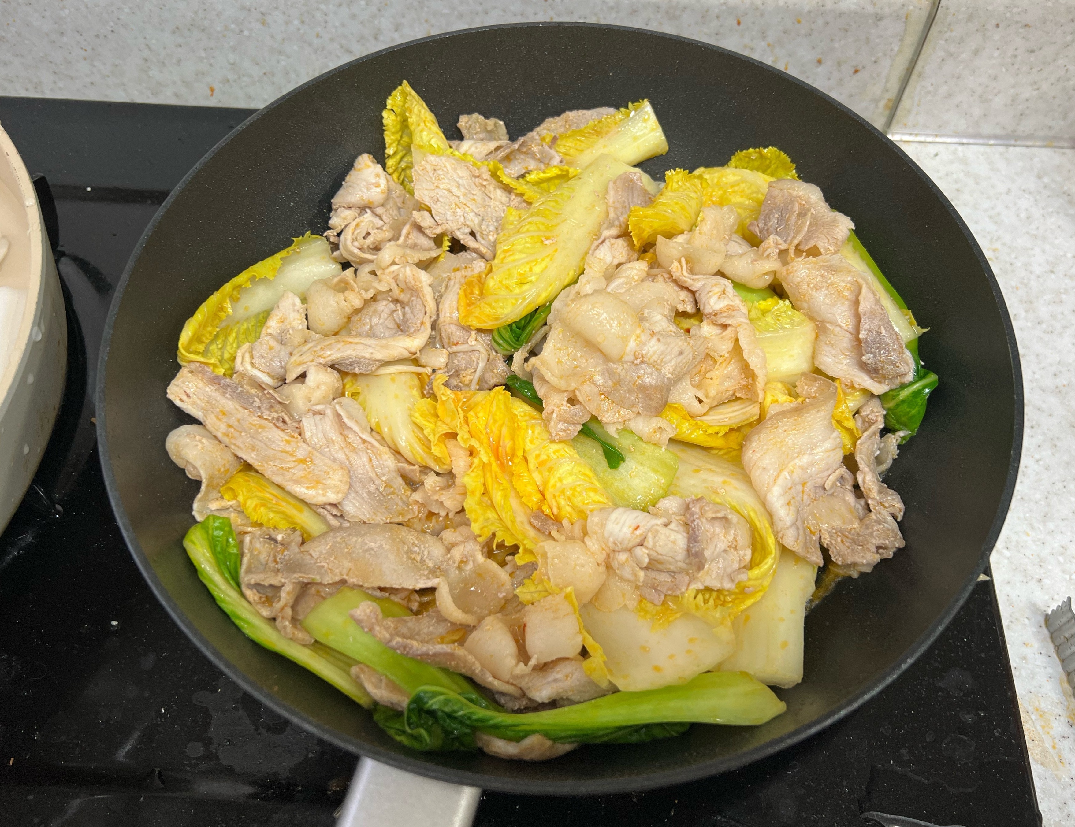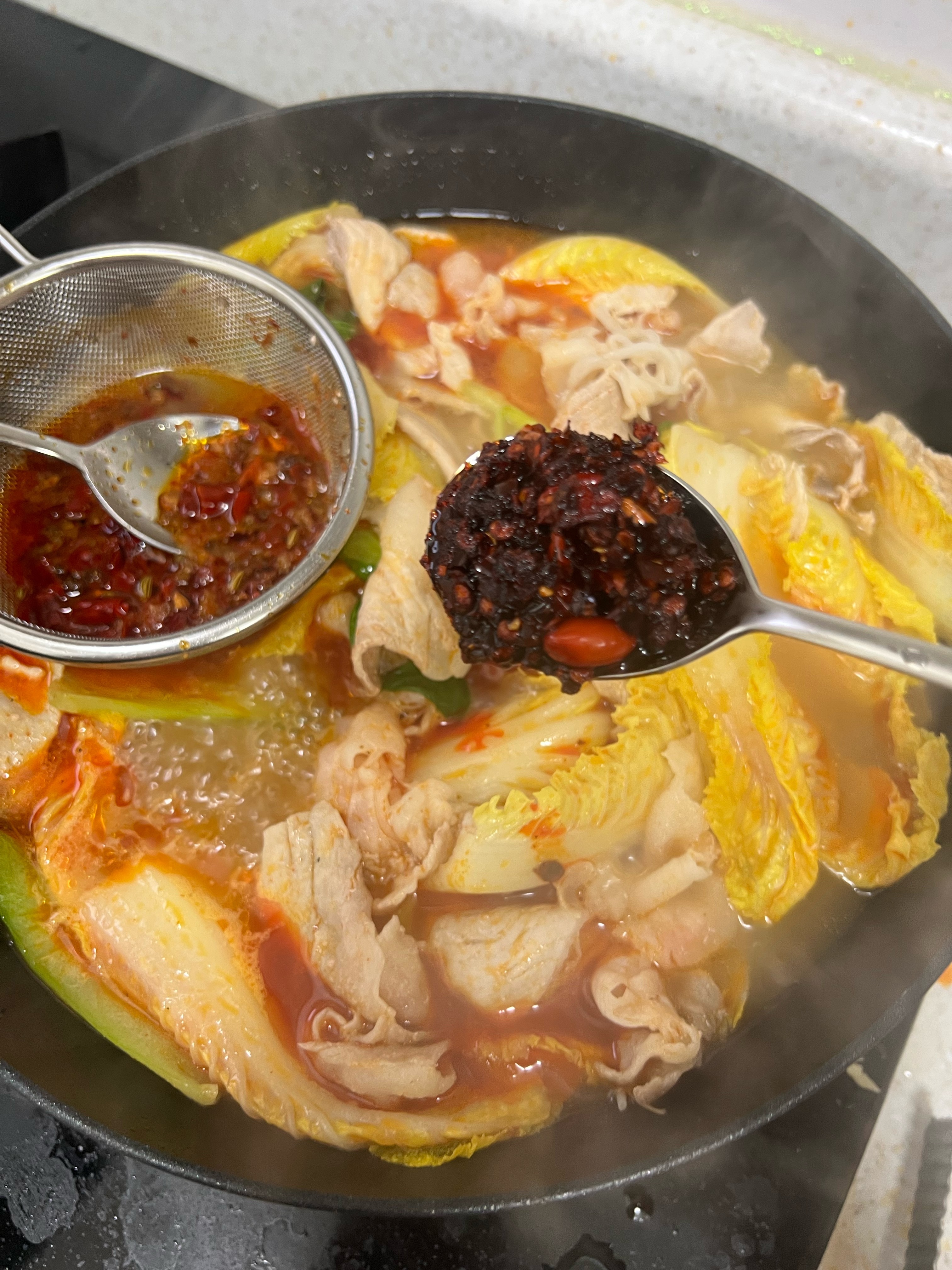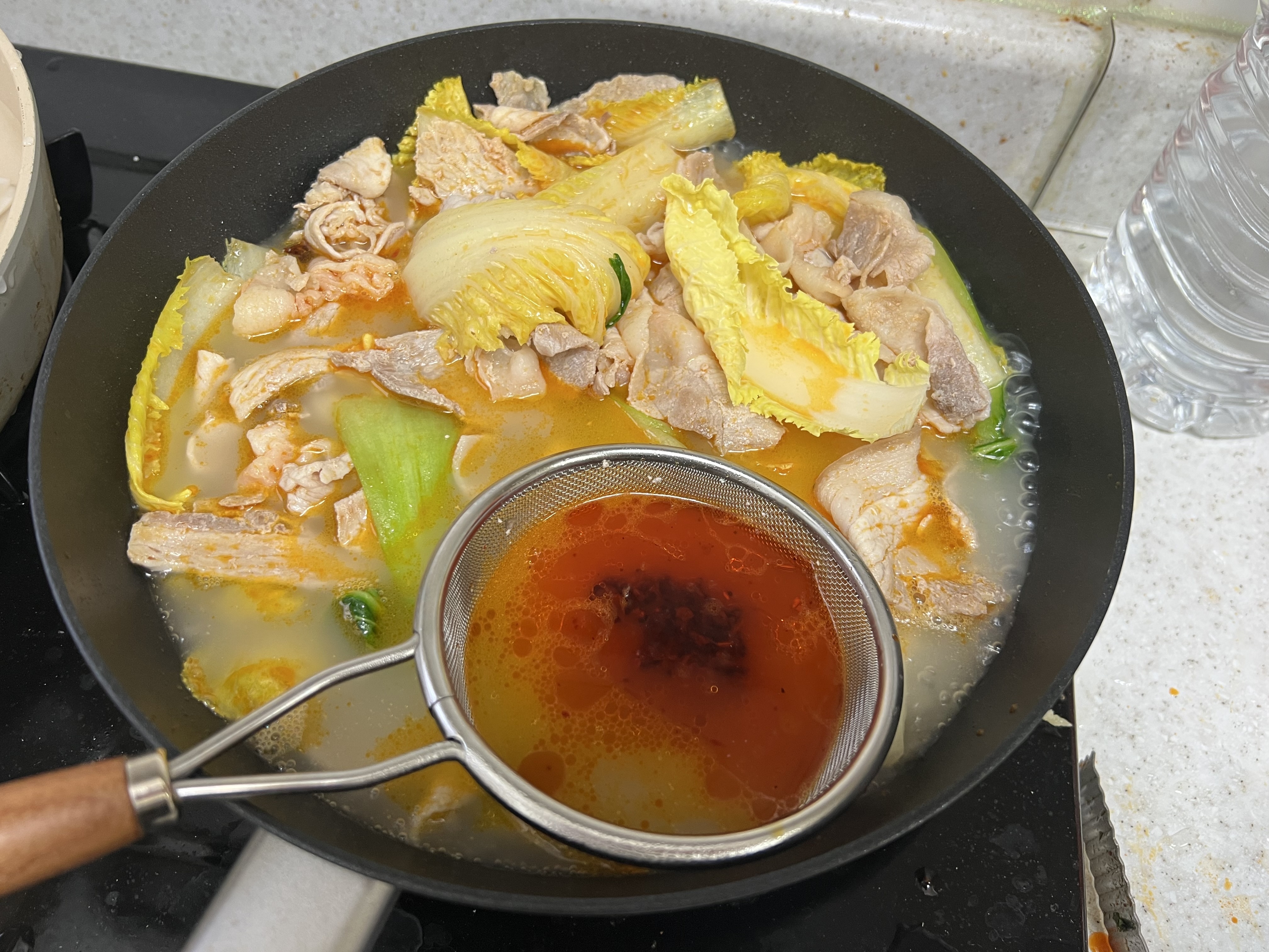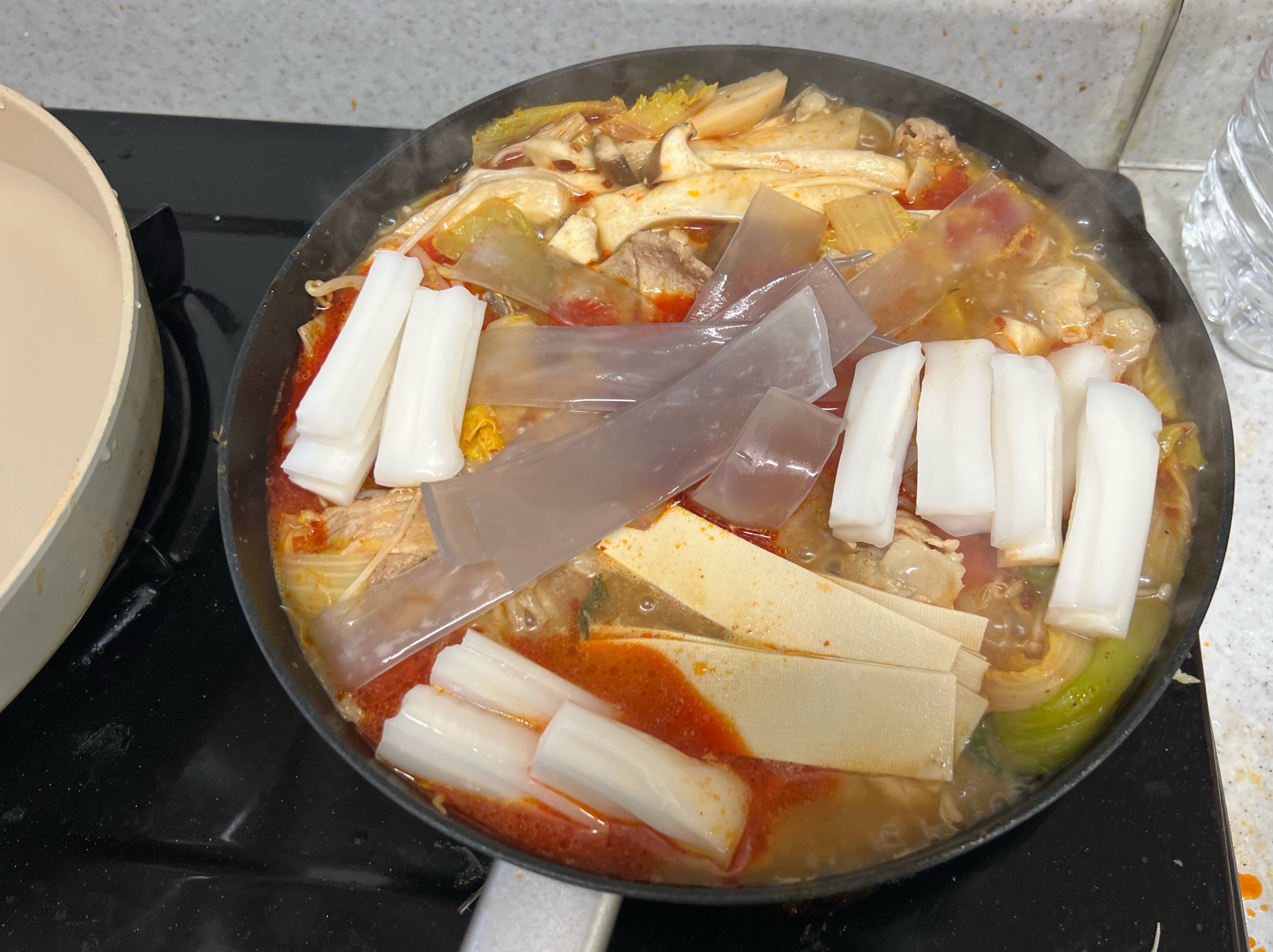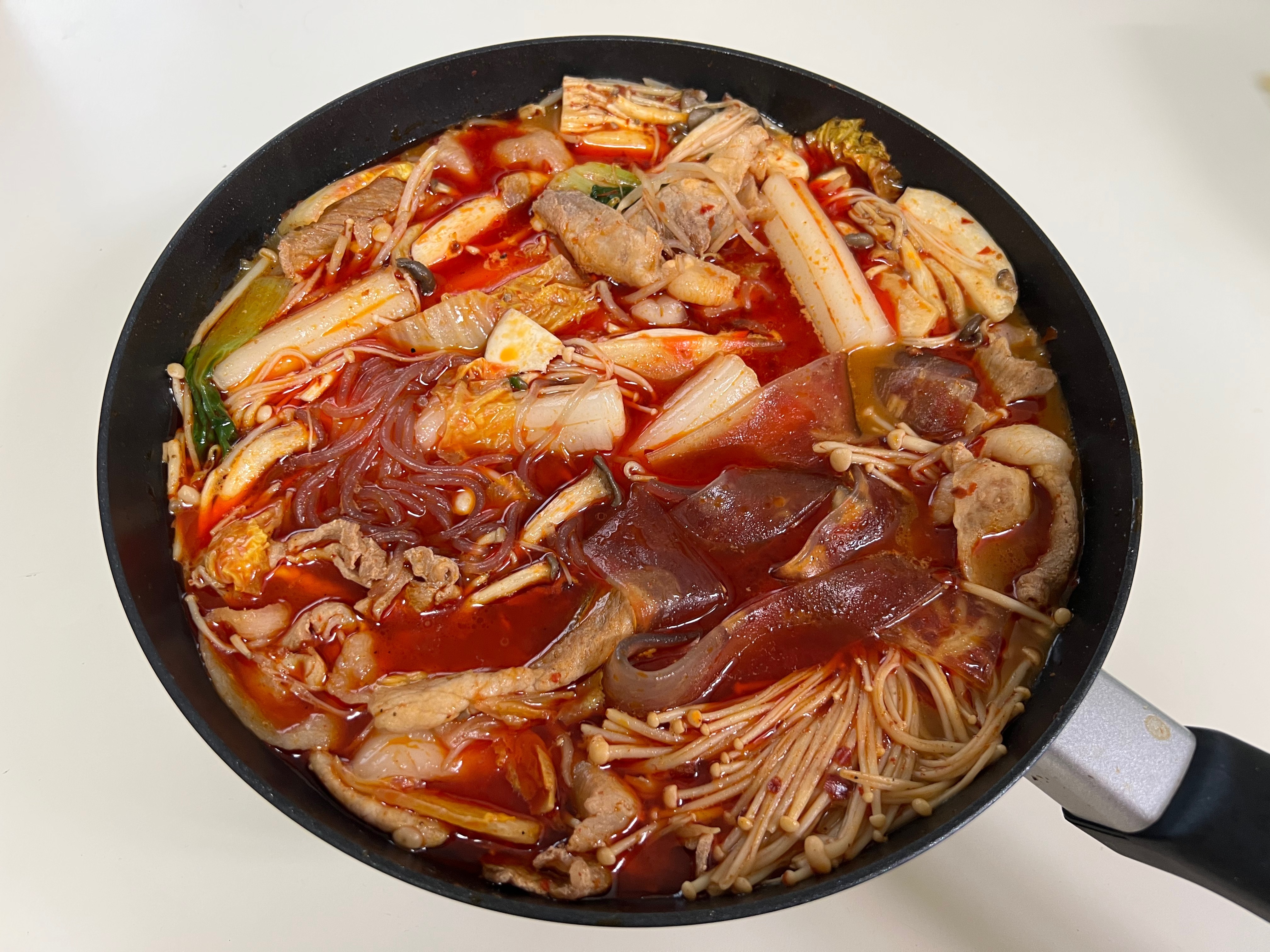 나는 새송이버섯 / 팽이버섯 / 알배추 / 청경채 / 숙주 / 고기 / 분모자 / 중국당면 / 소세지 / 건두부 정도 넣은것 같음!