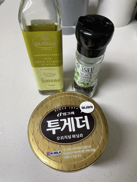 레몬올리브유 + 후추(순후추 이런거 절대놉) + 투게더