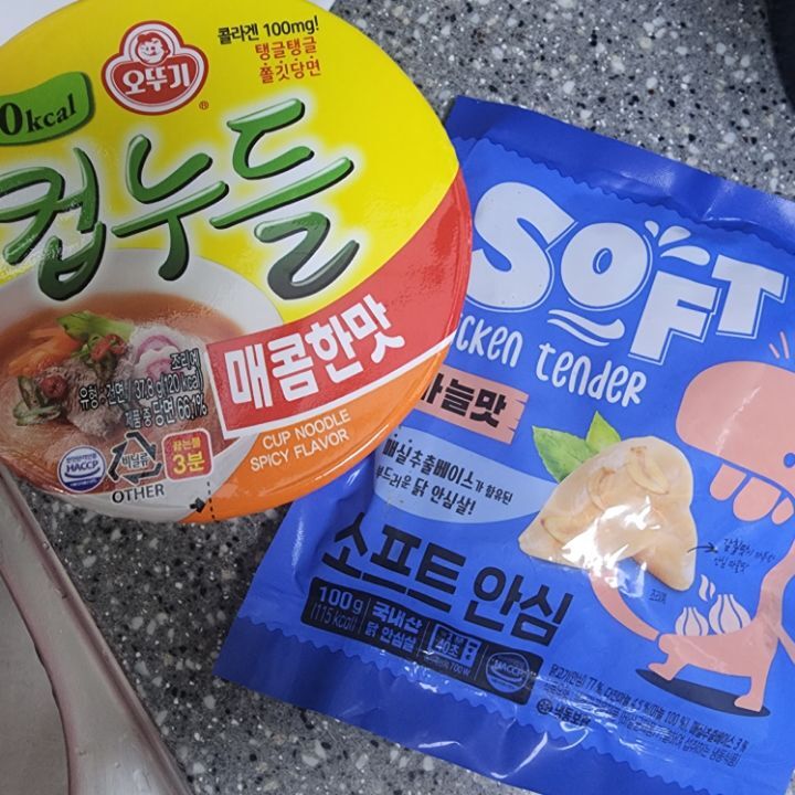 냉동실에서 잠자고있던 닭가슴살 컵누들 준비