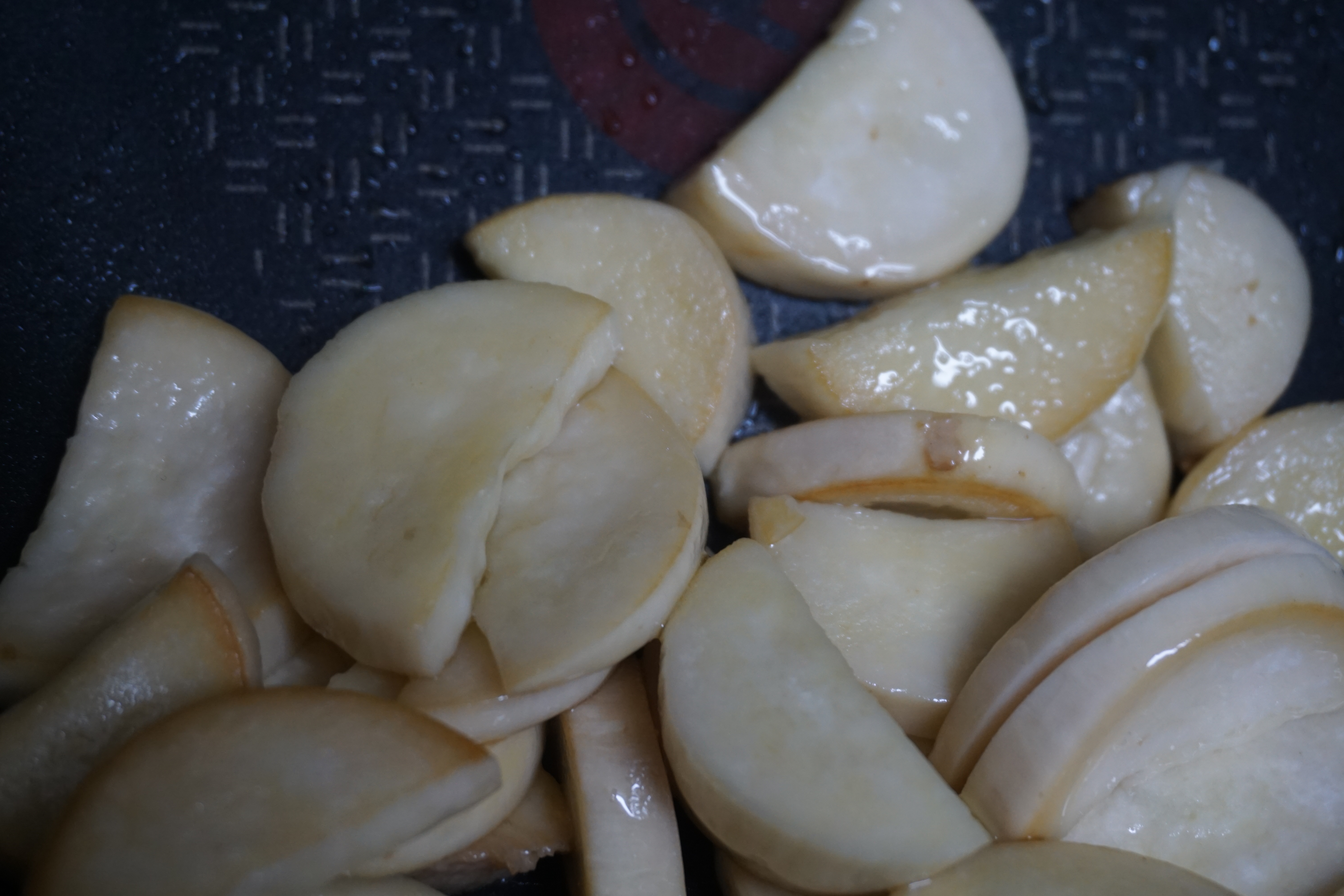 4. 프라이팬에 올리브유 세 스푼을 두르고, 채소를 볶는다.