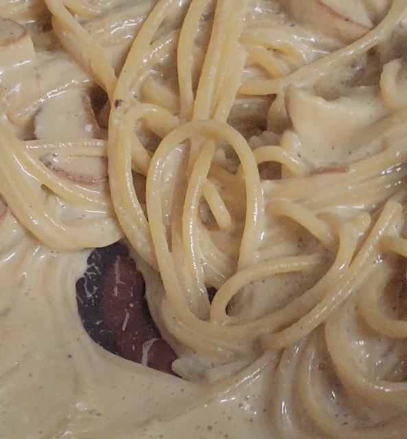 A. 면수 4국자 하면 닭알 넣은 까르보나라st 사진처럼 꾸~덕하고, 6국자 이상 넣으면 약간 묽은 소스 타입이야. 나는 좀 더 묽은 소스가 더 맛있었어.