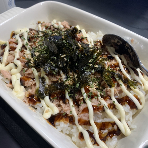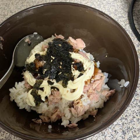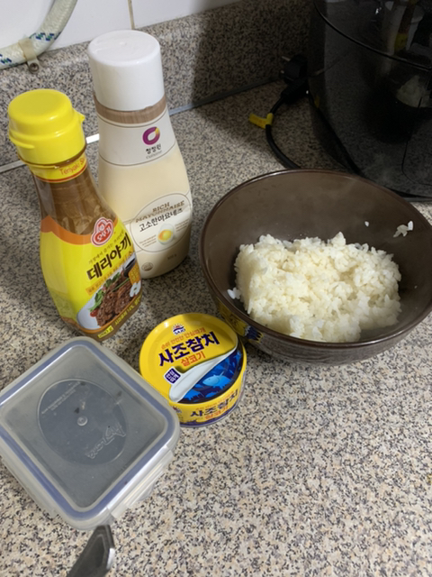 참치넣고 데리야끼 소스 넣고 마요네즈 넣고 김가루올리고 참깨뿌리고 존나 비벼서 먹으면 개꿀맛