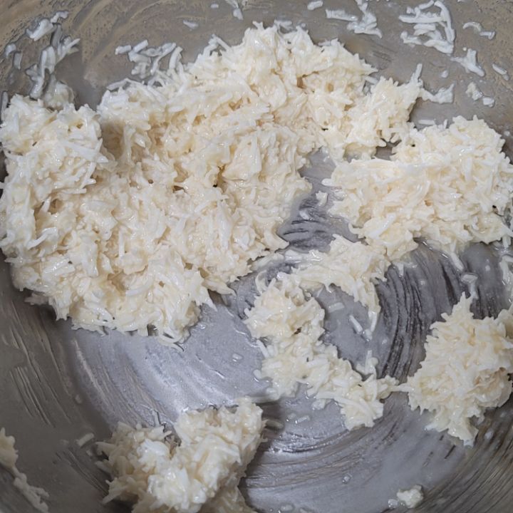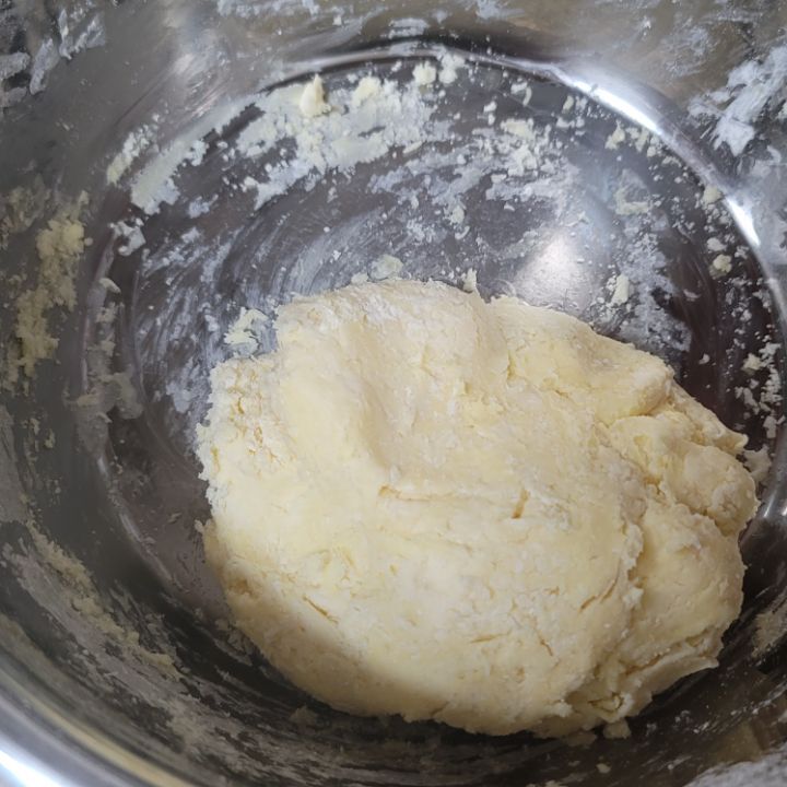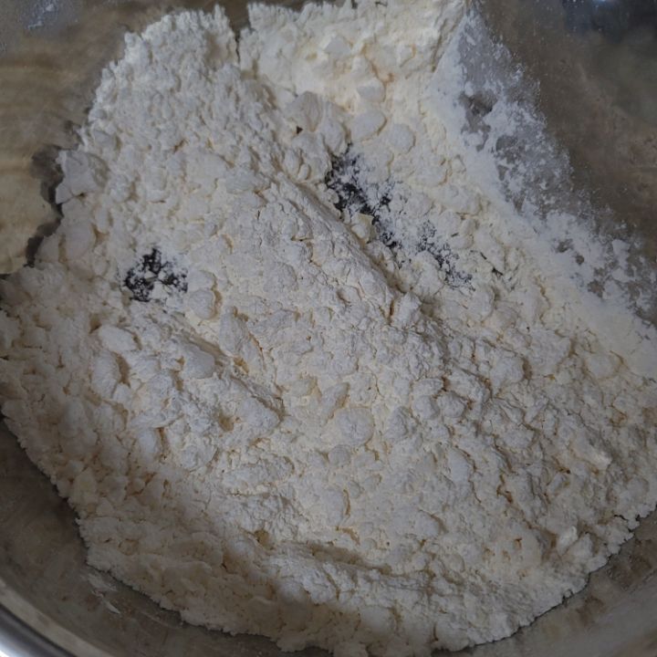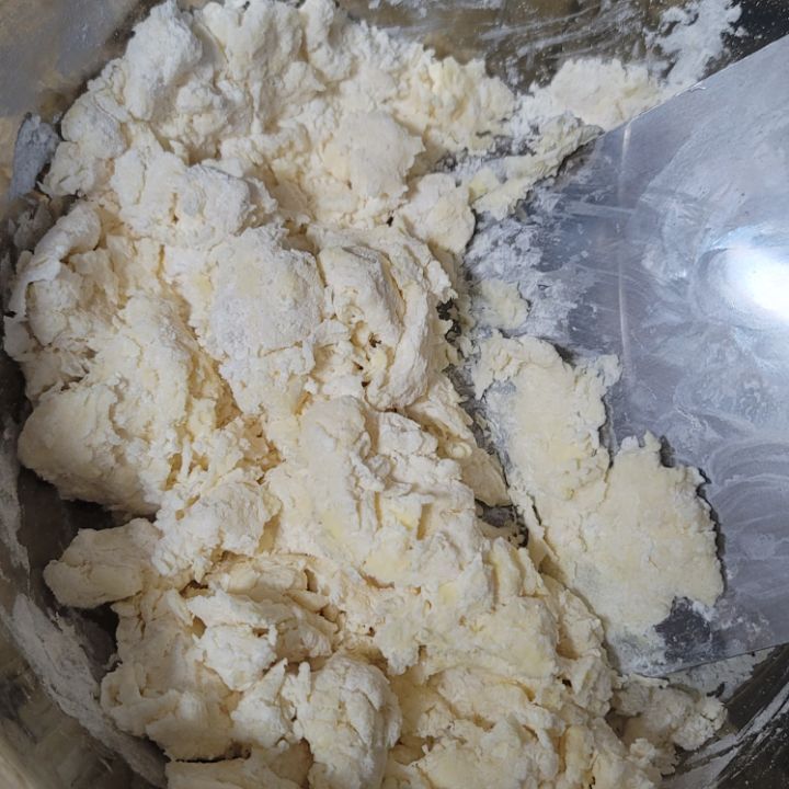 이정도로 부슬부슬하게 뭉쳐지면 우유를 넣고 스크래퍼로 섞다가 손으로 뭉쳐줘! ((많이 치대지마))