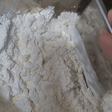 체친가루류에 버터를 넣고 스크래퍼로 버터를 조지면서 섞어