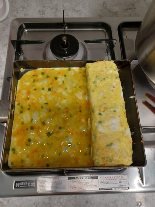 그리고 계란물 처음 붓고는 약불로 줄여줘