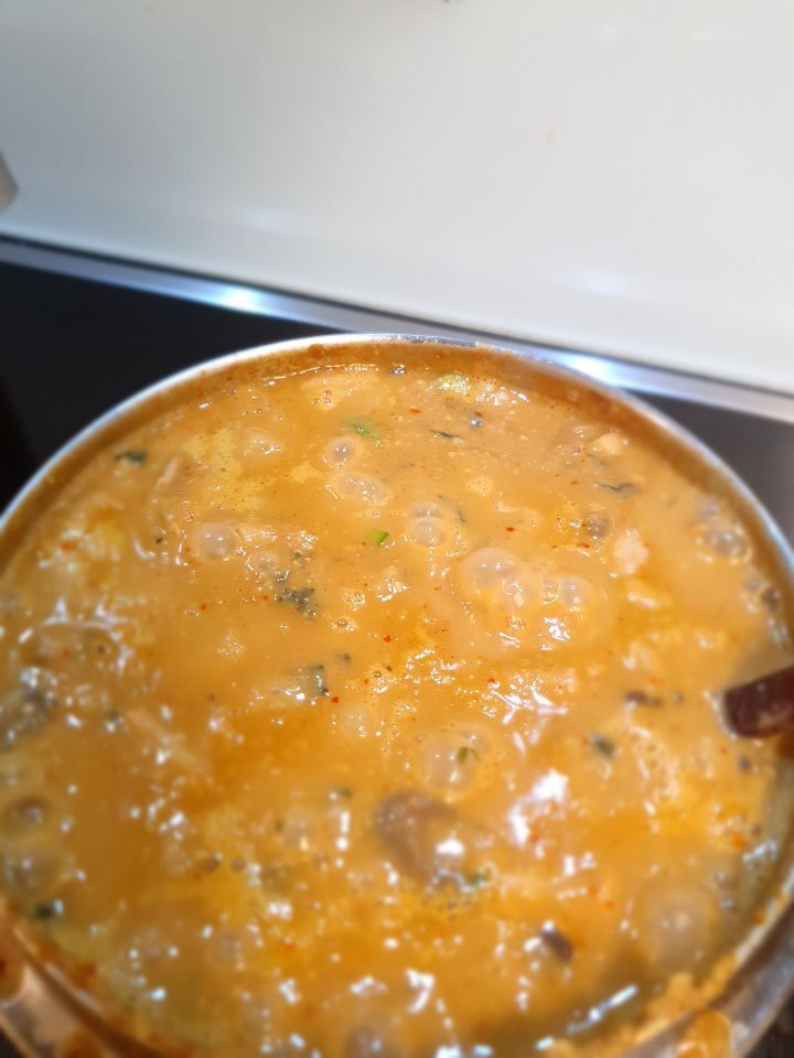 두부랑 쪽파있으시면 넣고(없음 대파 흰부분 썰어서), 걸쭉하게 끓이고 뒤적뒤적