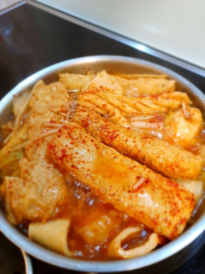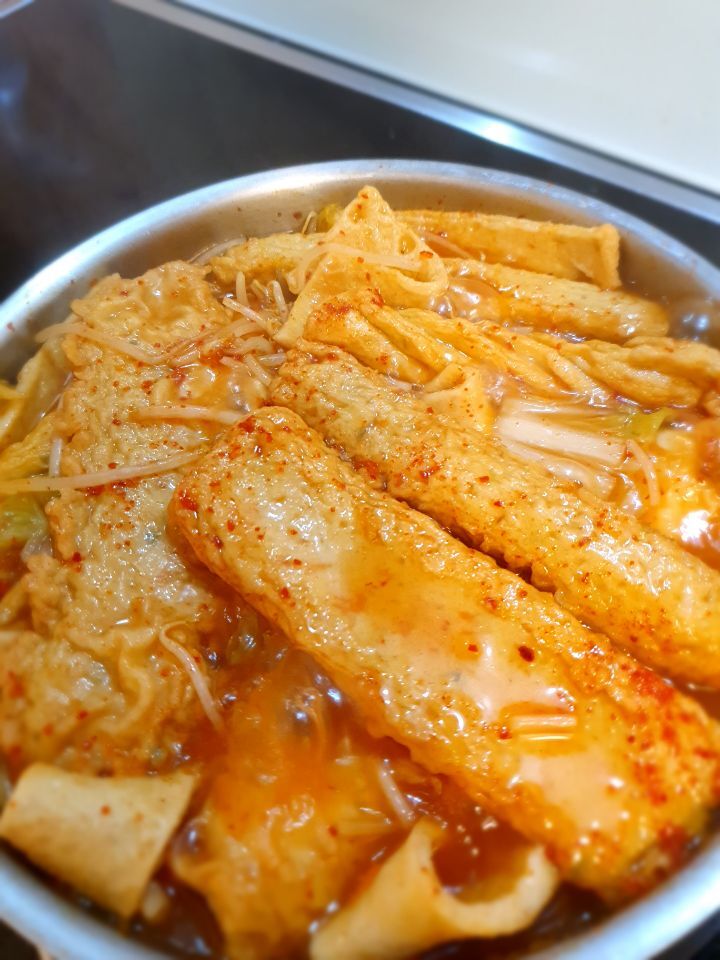 7. 어묵넣어서 팔팔 끓여주세요 뒤적뒤적 하다보면 어묵에서 나온 맛과 기름때문에 1차로 맛이 한번 바껴요