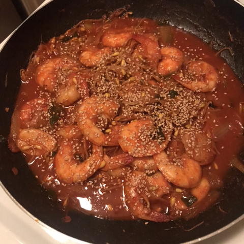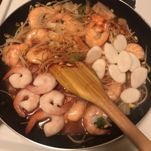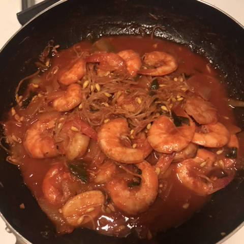 어,, 나는 새우찜에 새우를 토핑으로 넣음:. 새우를 많이 먹고 싶어서.. 여튼 쿡새우 5마리와 떡을 넣음