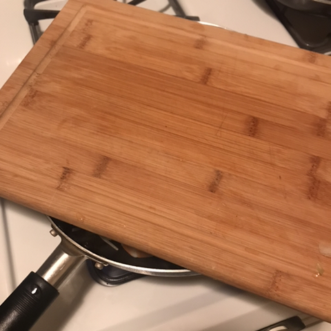 6. 그리고 뚜껑이 있으면 뚜껑, 나처럼 도마가 있으면 도마,, 등등 덮어주고 콩나물 일단 숨을 좀 죽이자