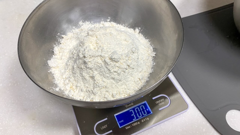 밀가루 박력분 300g, 베이킹파우더 5g 계량하고