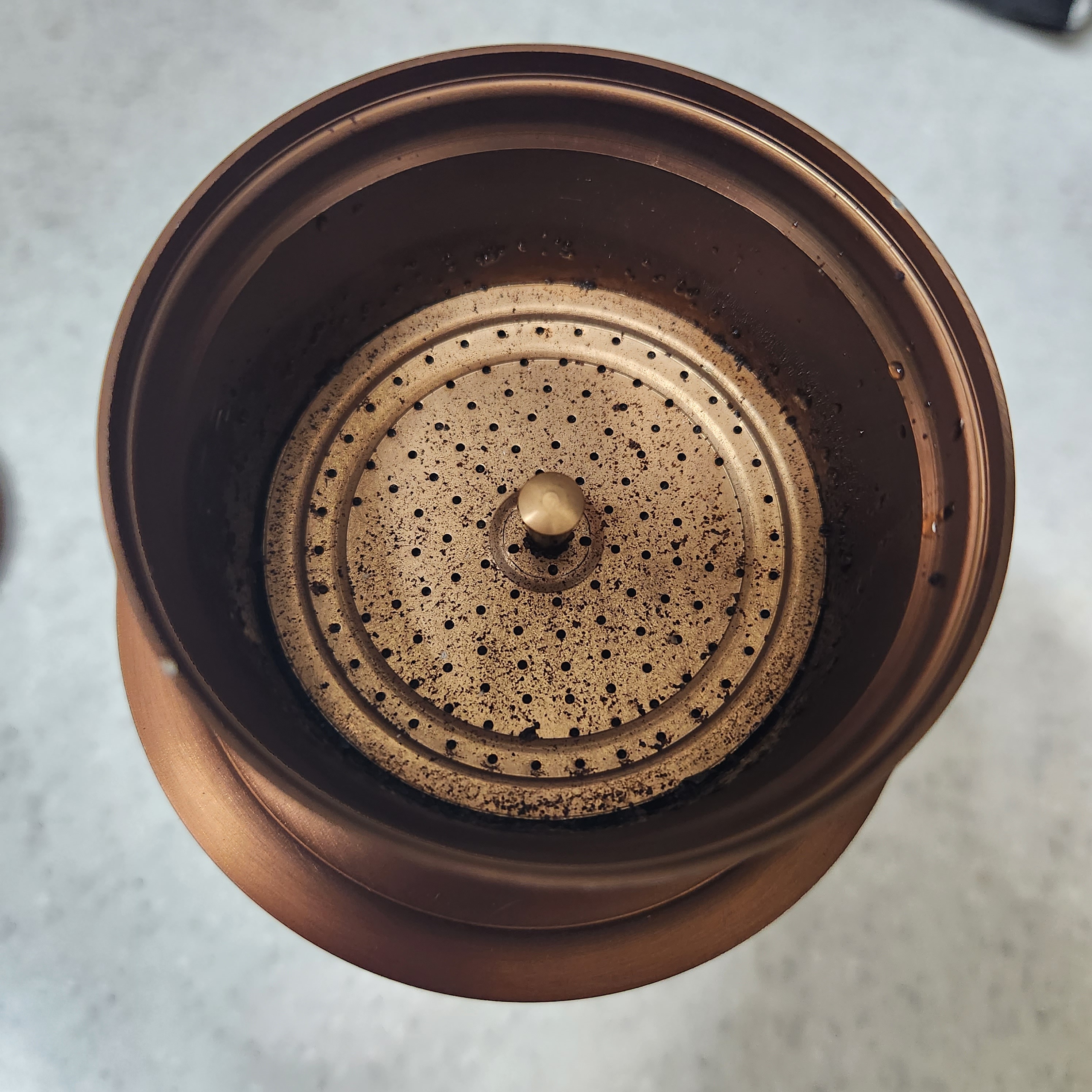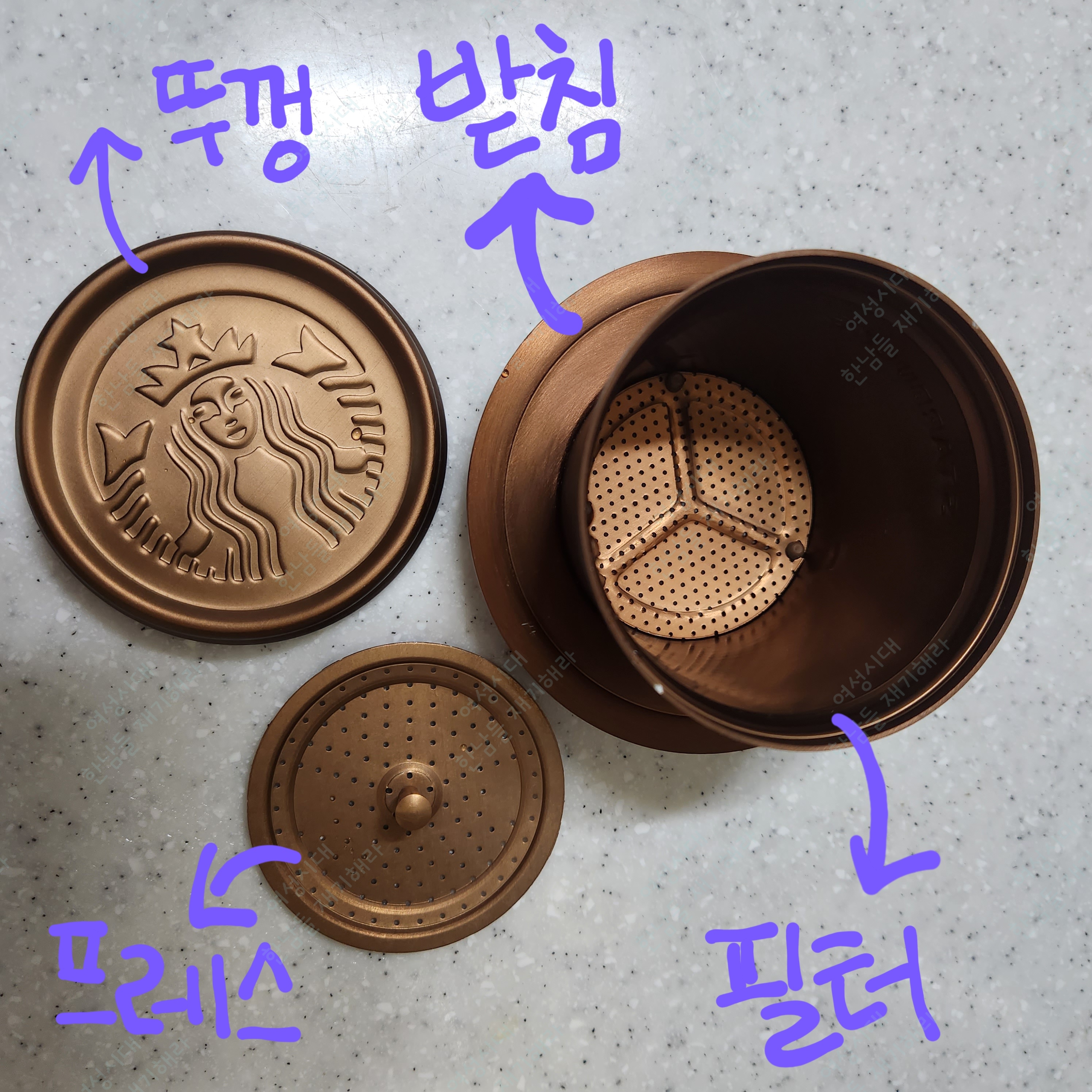 받침대, 필터, 프레스, 뚜껑으로 구성되어있습니다.