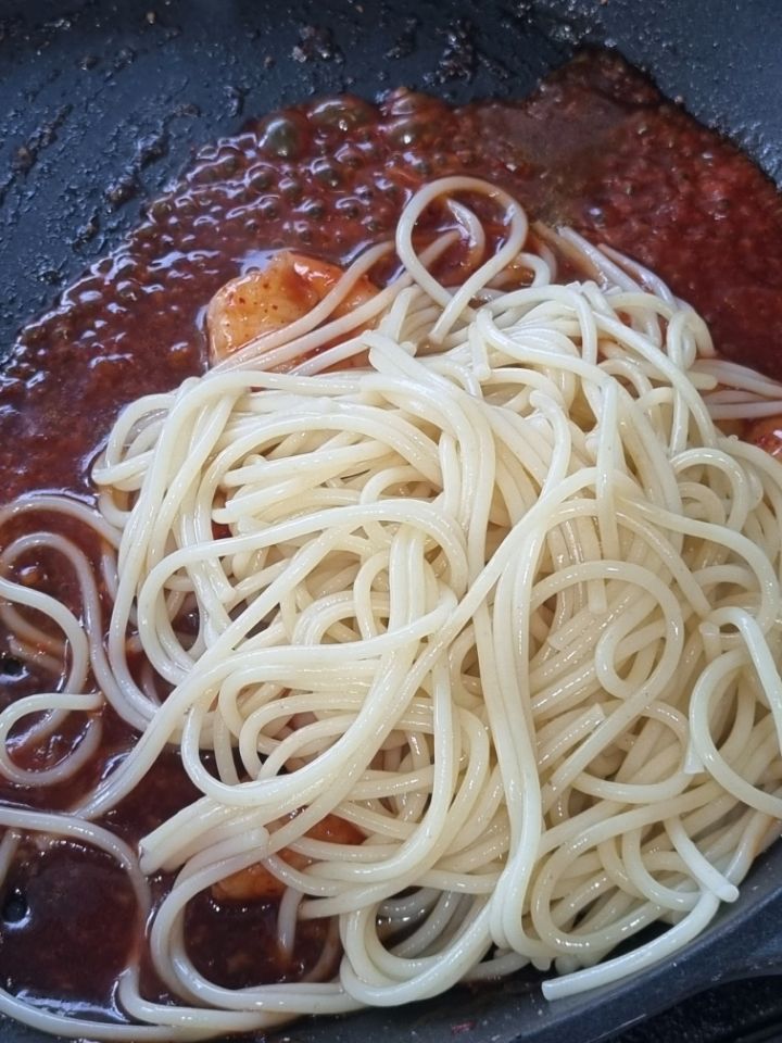 소스가 너무 많길래 파스타를 넣어봤는데.......맛있다??