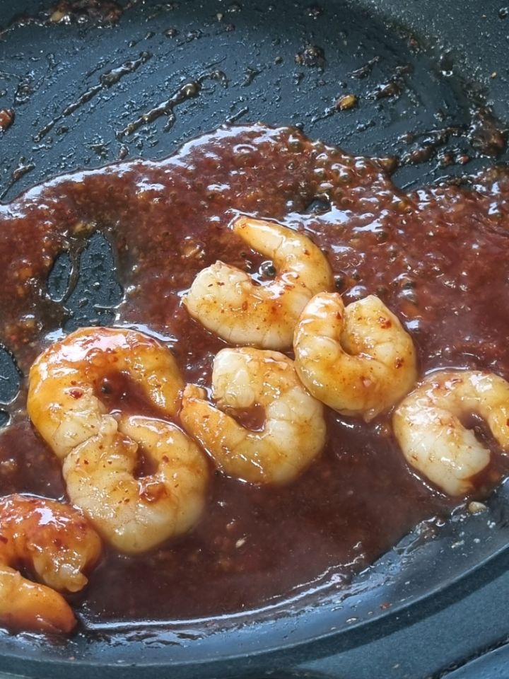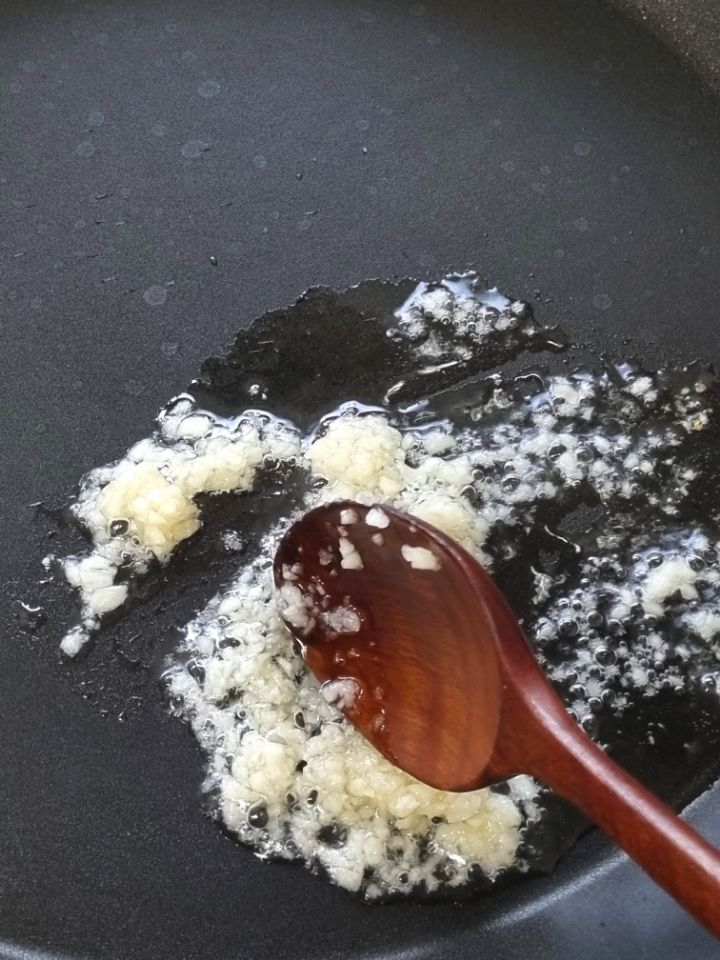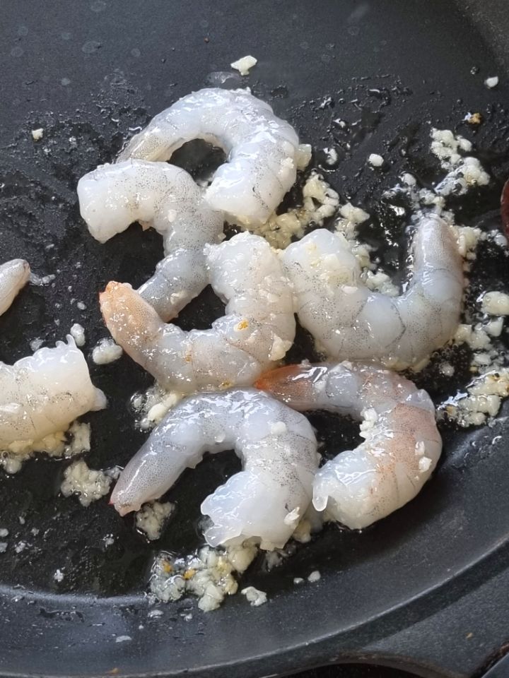 식용유에 다진마늘 한숟갈 넣고 볶다가 새우 익혀주기