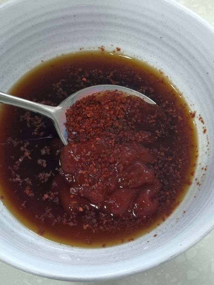 (물2T, 진간장2T, 케찹2T, 설탕1.5T, 식초 1T, 고춧가루1T)