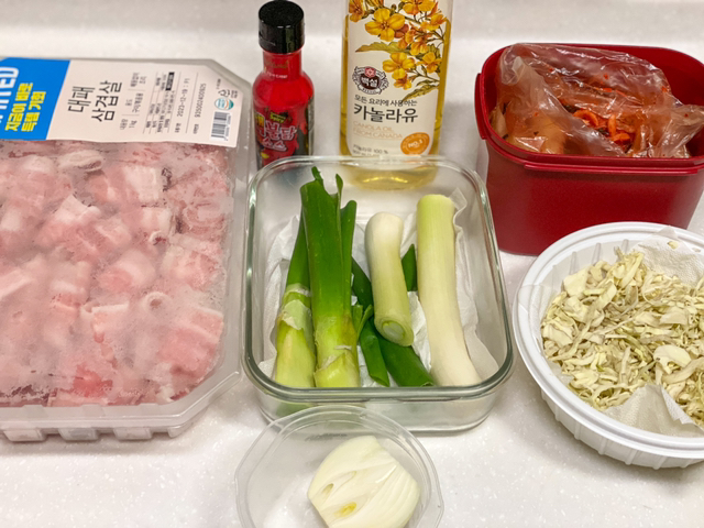 초간단 대패삼겹살 김치제육볶음 재료는
