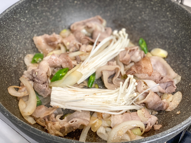버섯이랑 청양고추 넣고 또 볶아줘