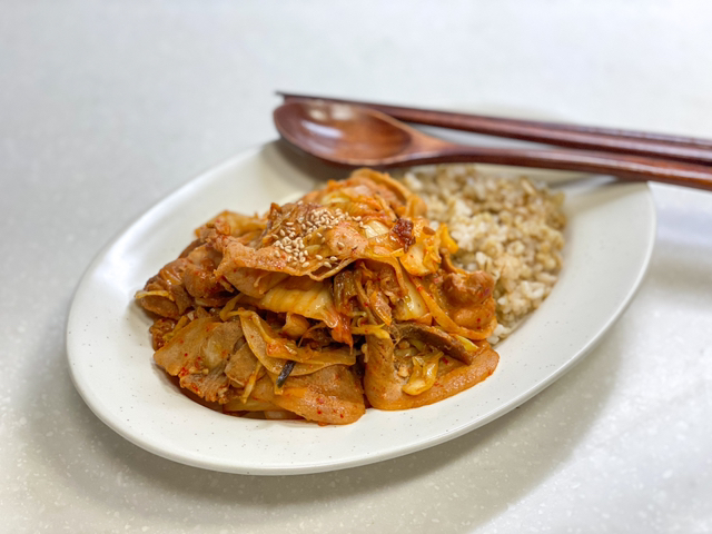 김치가 좀 싱거운 편이면 밥공기 1/2그릇 정도