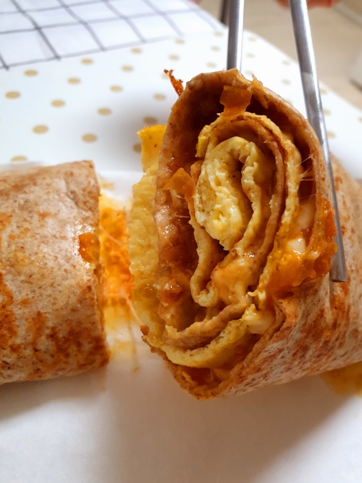 계란이랑 또띠아가 부드러워서 진짜 돌돌돌 잘말려ㅎㅎ