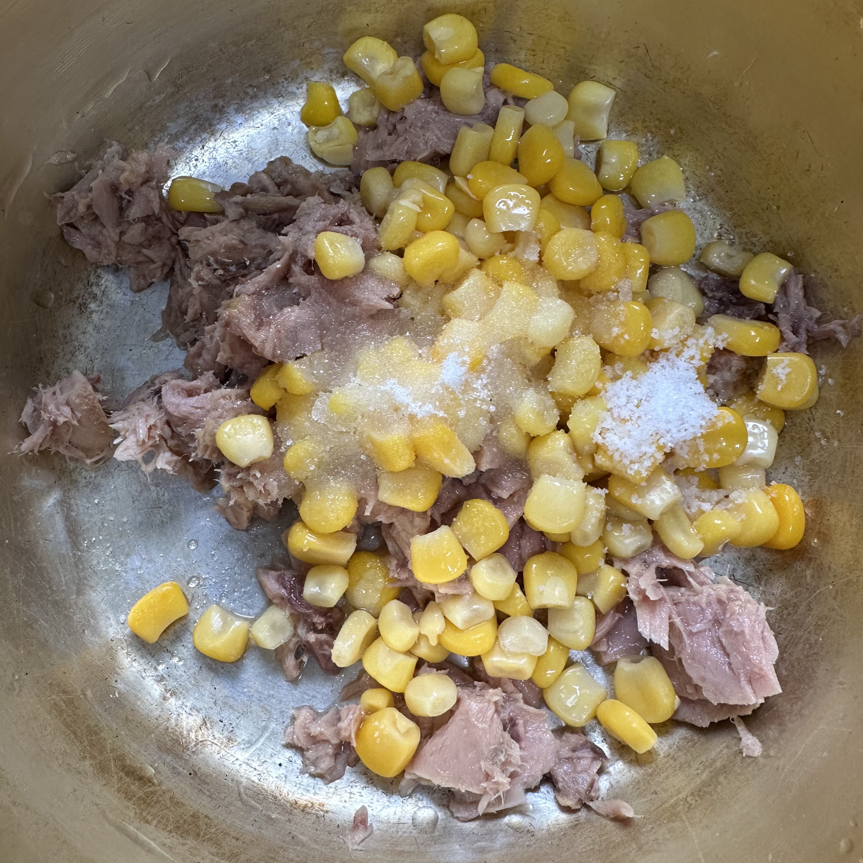 준비물: 옥수수캔, 단무지, 참치, 설탕, 소금, 마요네즈