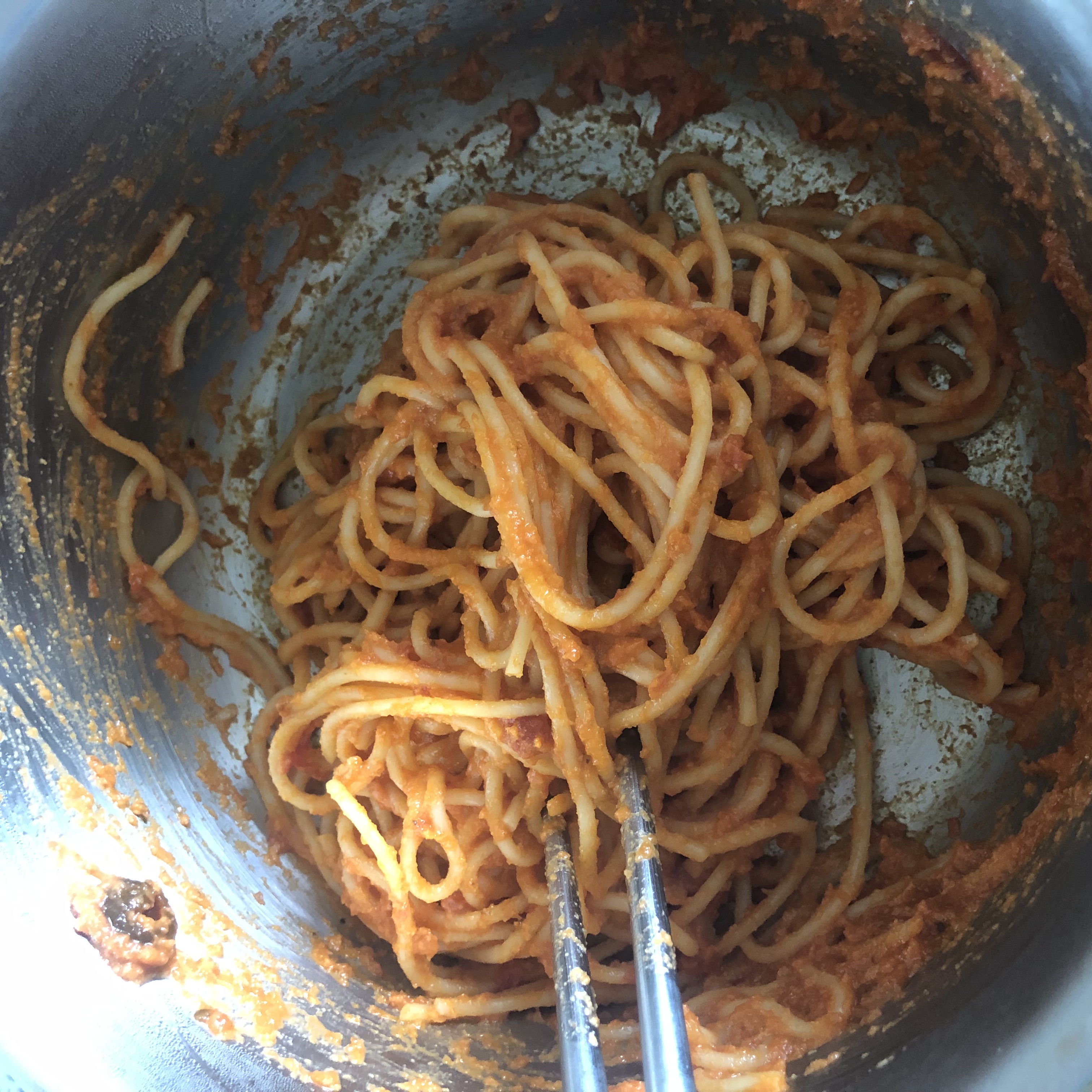 재료: 🍅토마토 소스, 아몬드 가루, 파스타 면