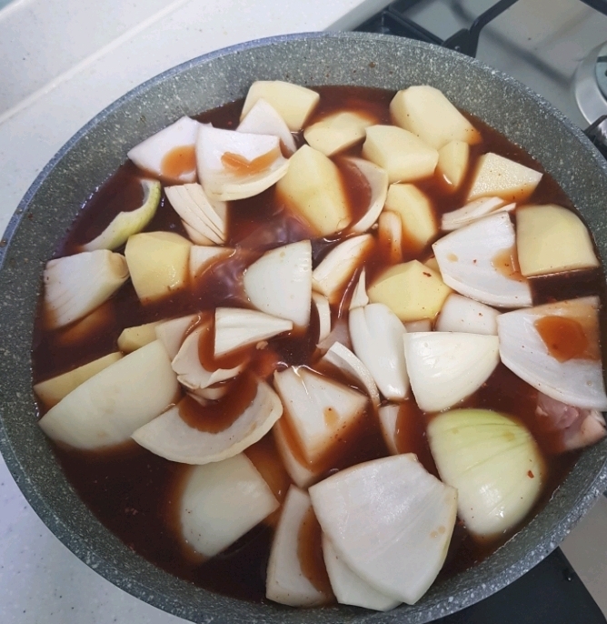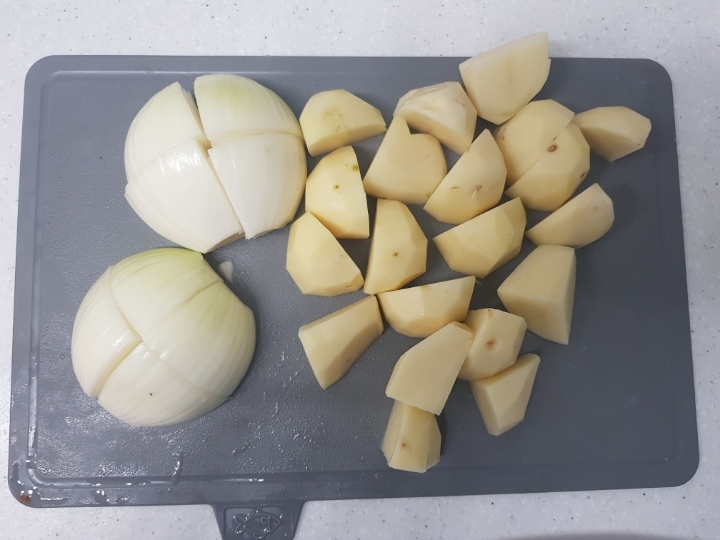감자 4개 양파 1개 쳡쳡 썰어주세요