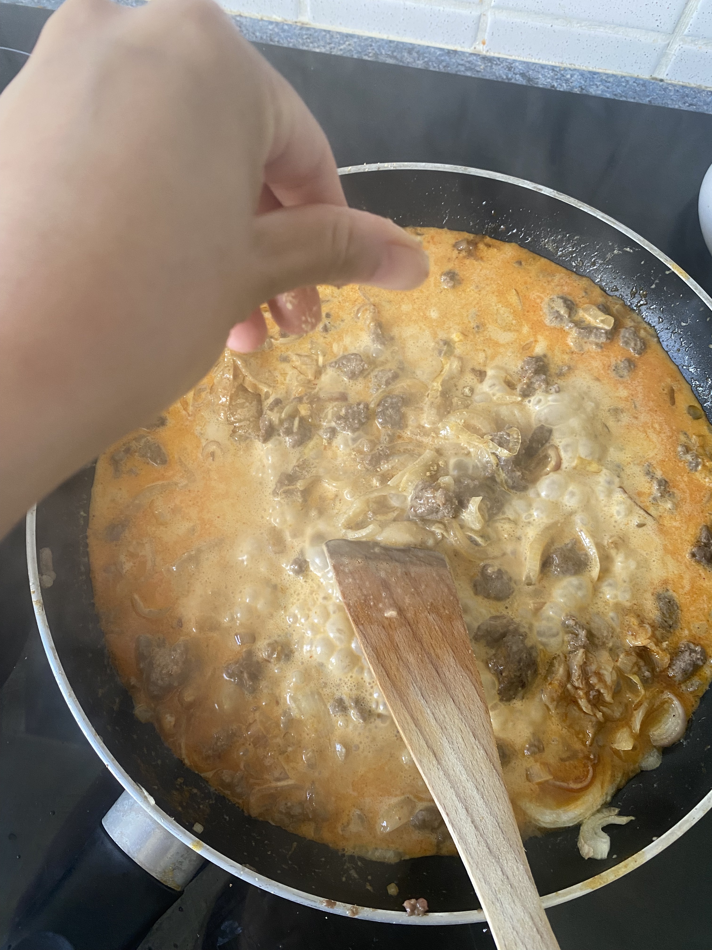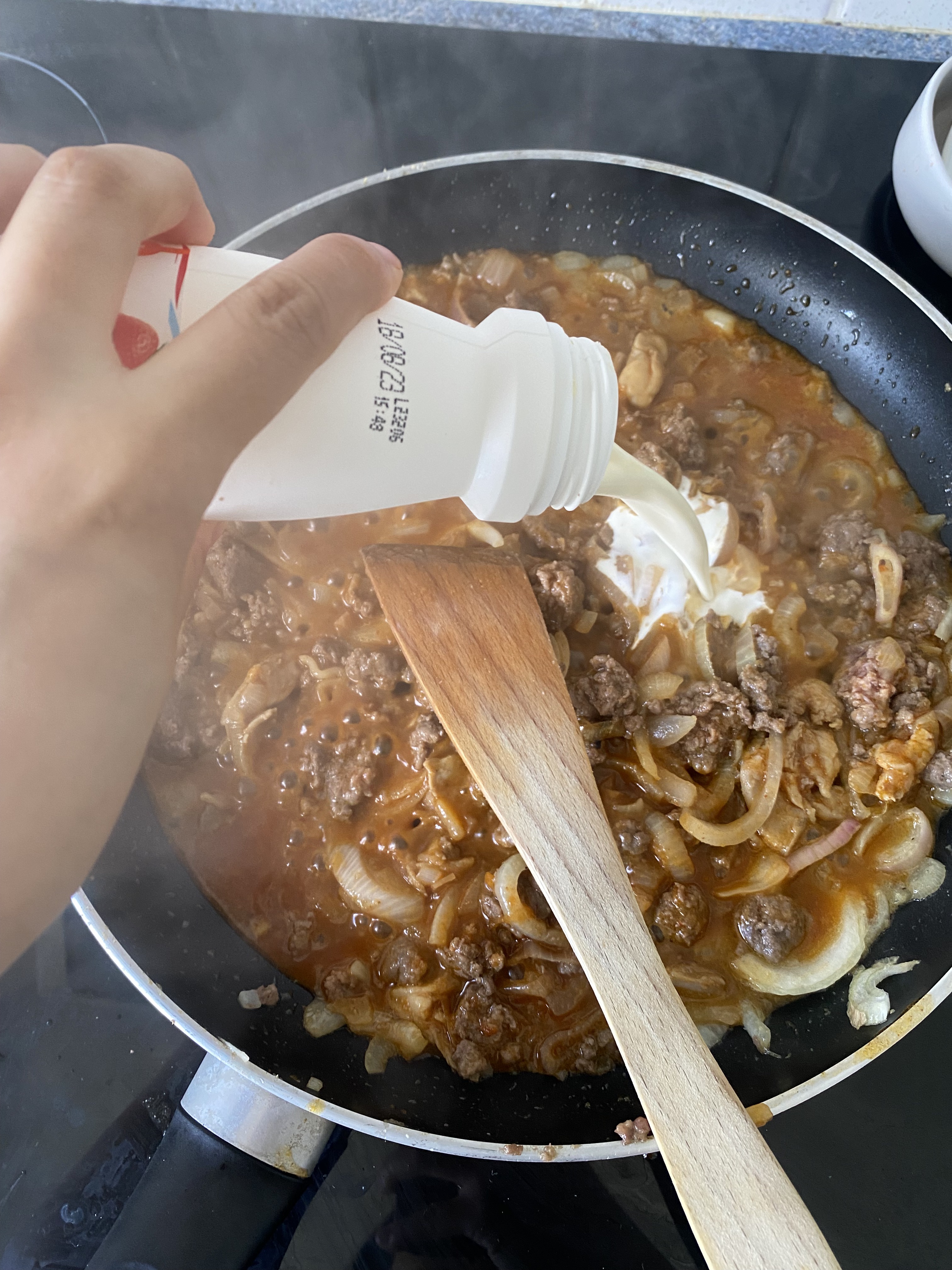 국물이 묽기때문에 생크림 넣어야 농도가 맞아요