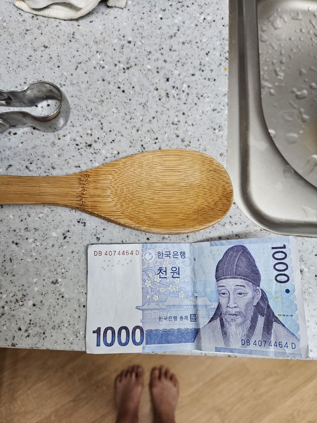 스푼은 이 스푼입니더.... 사이즈 보라고 부려부랴 천원꺼냄..