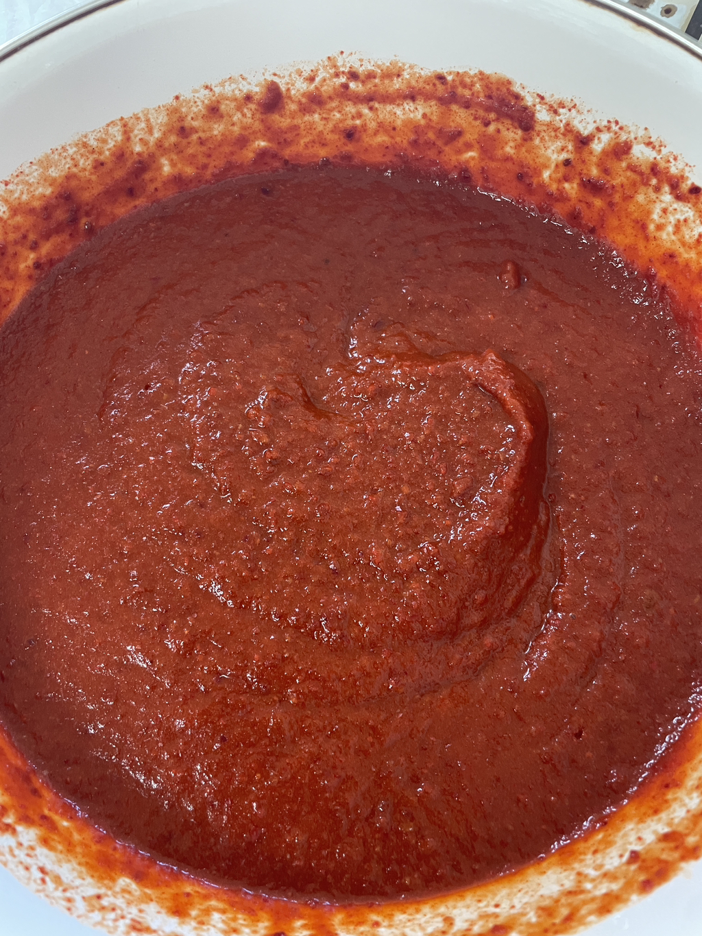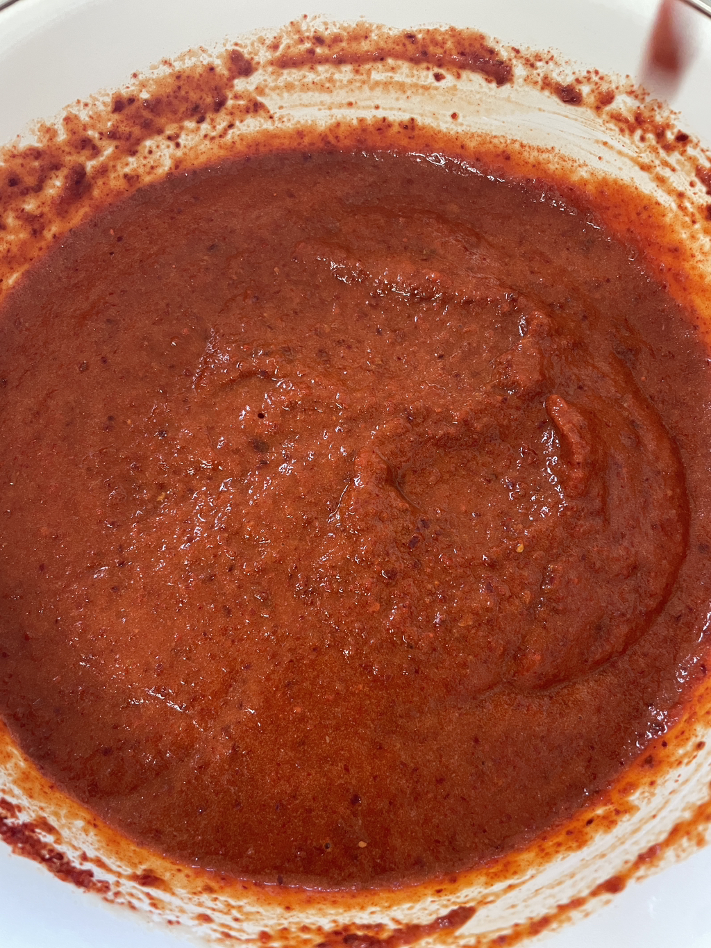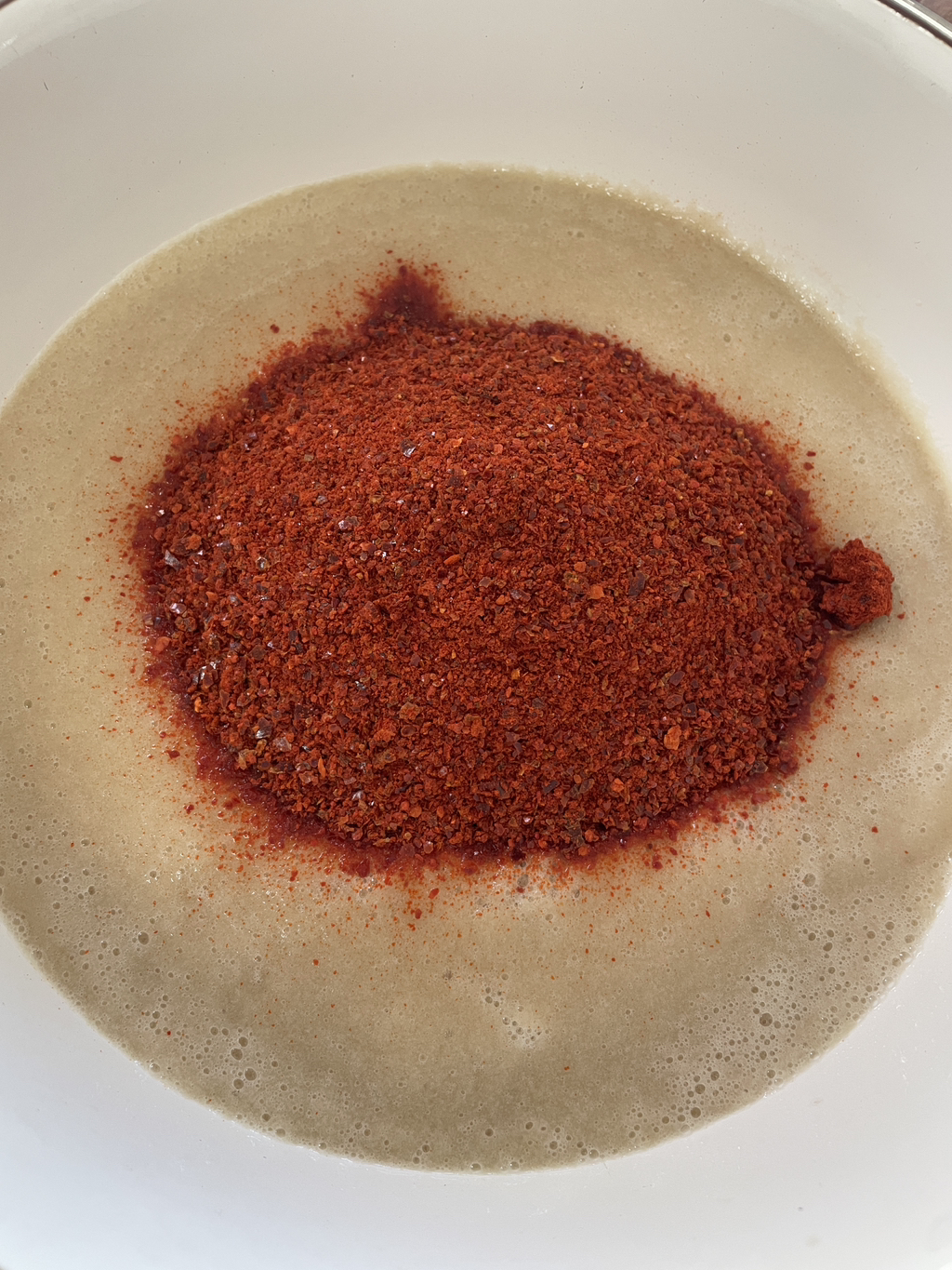 3. 다 갈린 양념에 고춧가루 1컵을 넣고 섞어줘.