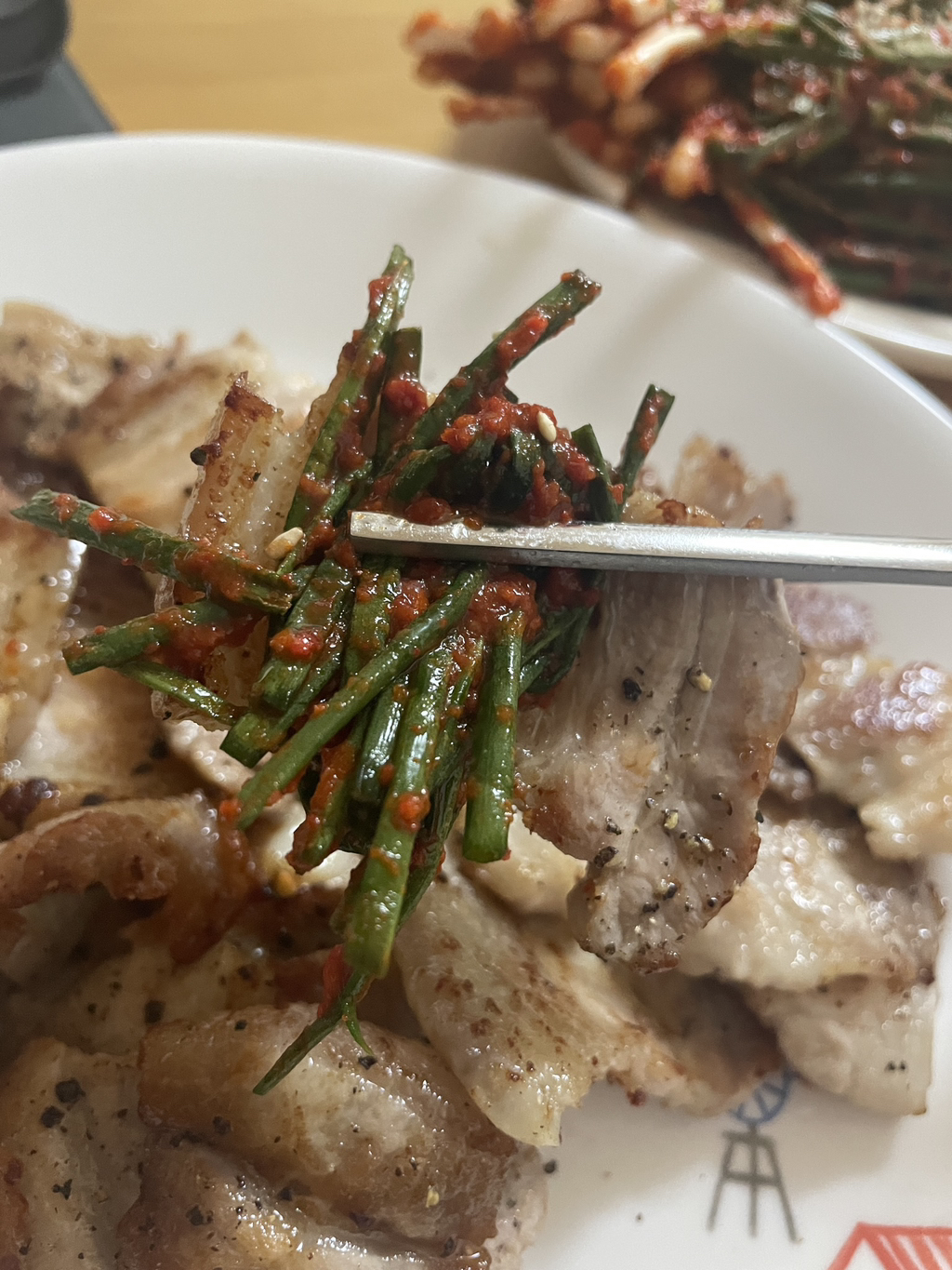 개인적으로 파가 아직 싱싱하고 완전히 절여지지 않아서 매운맛이 강할때 초록부분 먹는걸 좋아해!