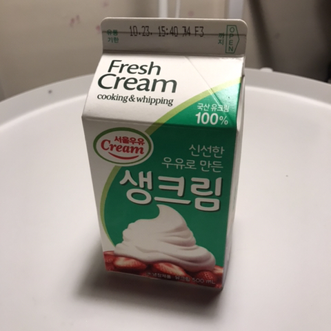 나는 유지방 38%짜리 서울우유 생크림을 썼는데 유지방 함량 높을수록 좋음! 밀시들은 heavy cream 구할 수 있으면 그걸로 해~