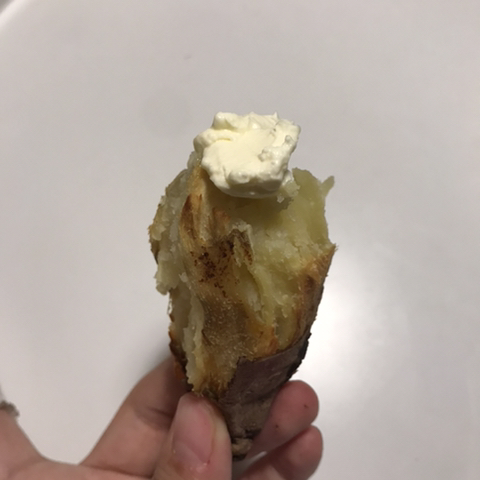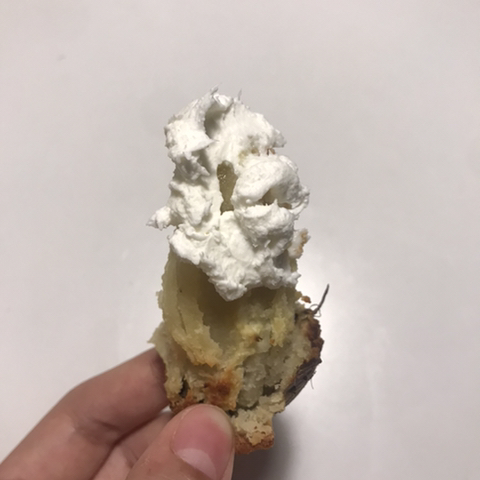 스콘을 안구울때 뭐에 먹어볼까 하다가 에프에 갓구운 군고구마에 발라먹었는데