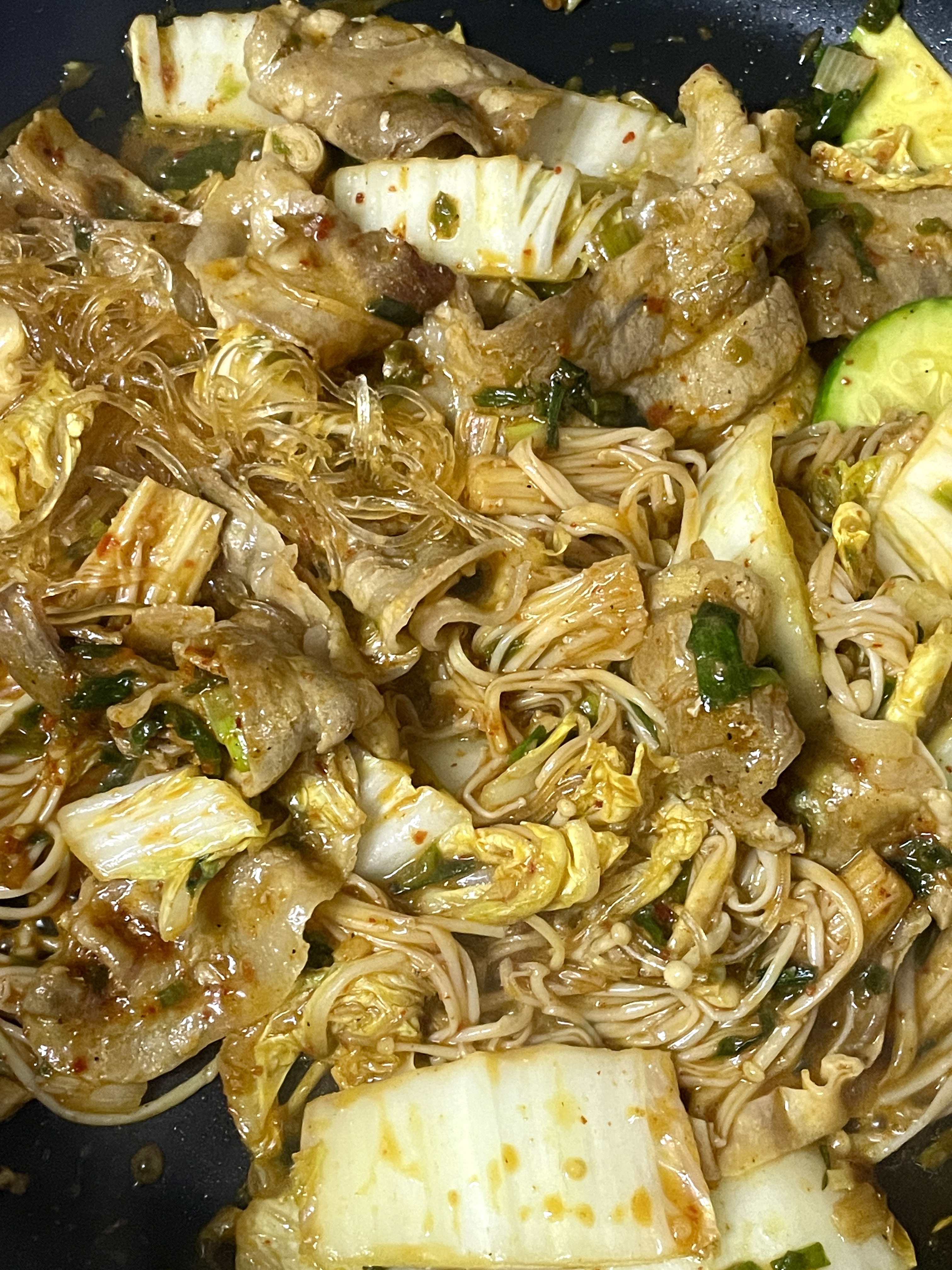 근데 면 살짝 잠길만큼만 물 넣고 그 물 안빼고 그대로 야채볶던거에 면이랑 부어주고 볶는거 맞아????? -
