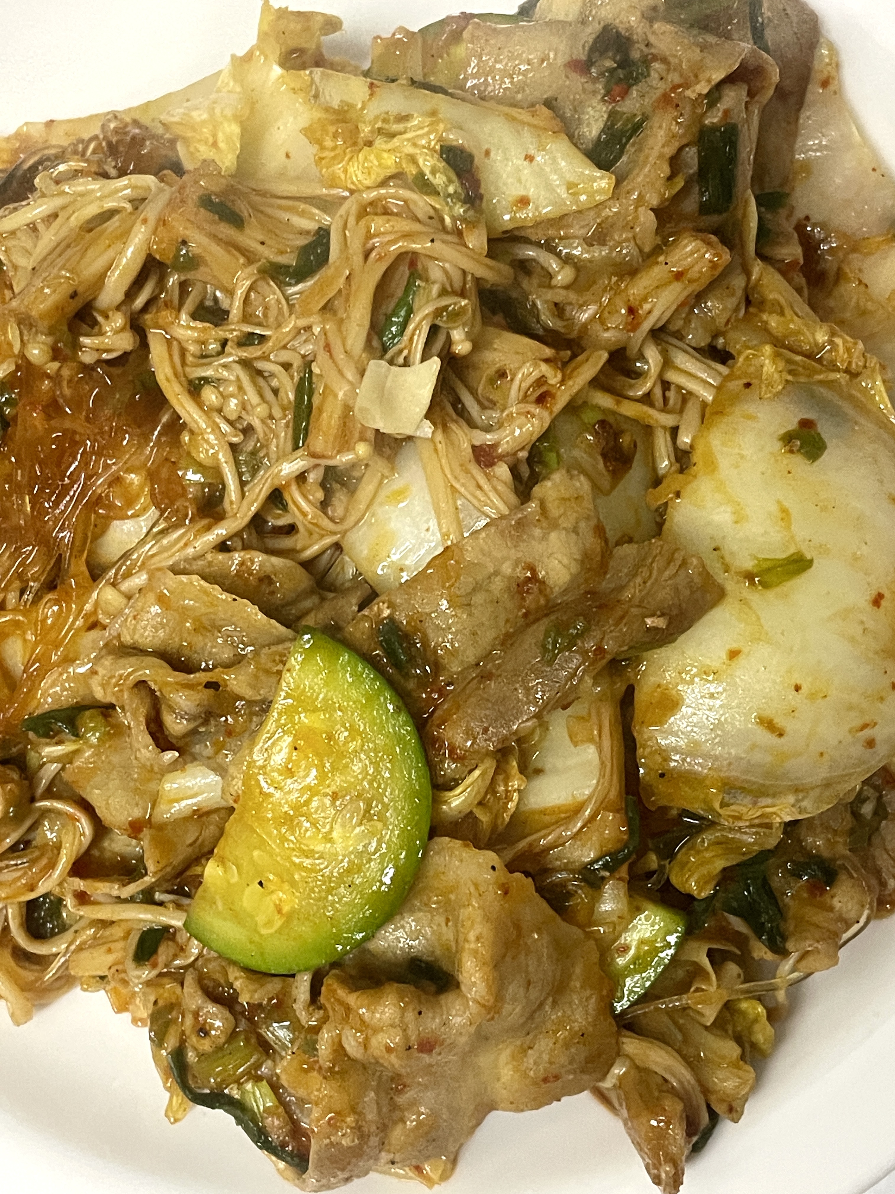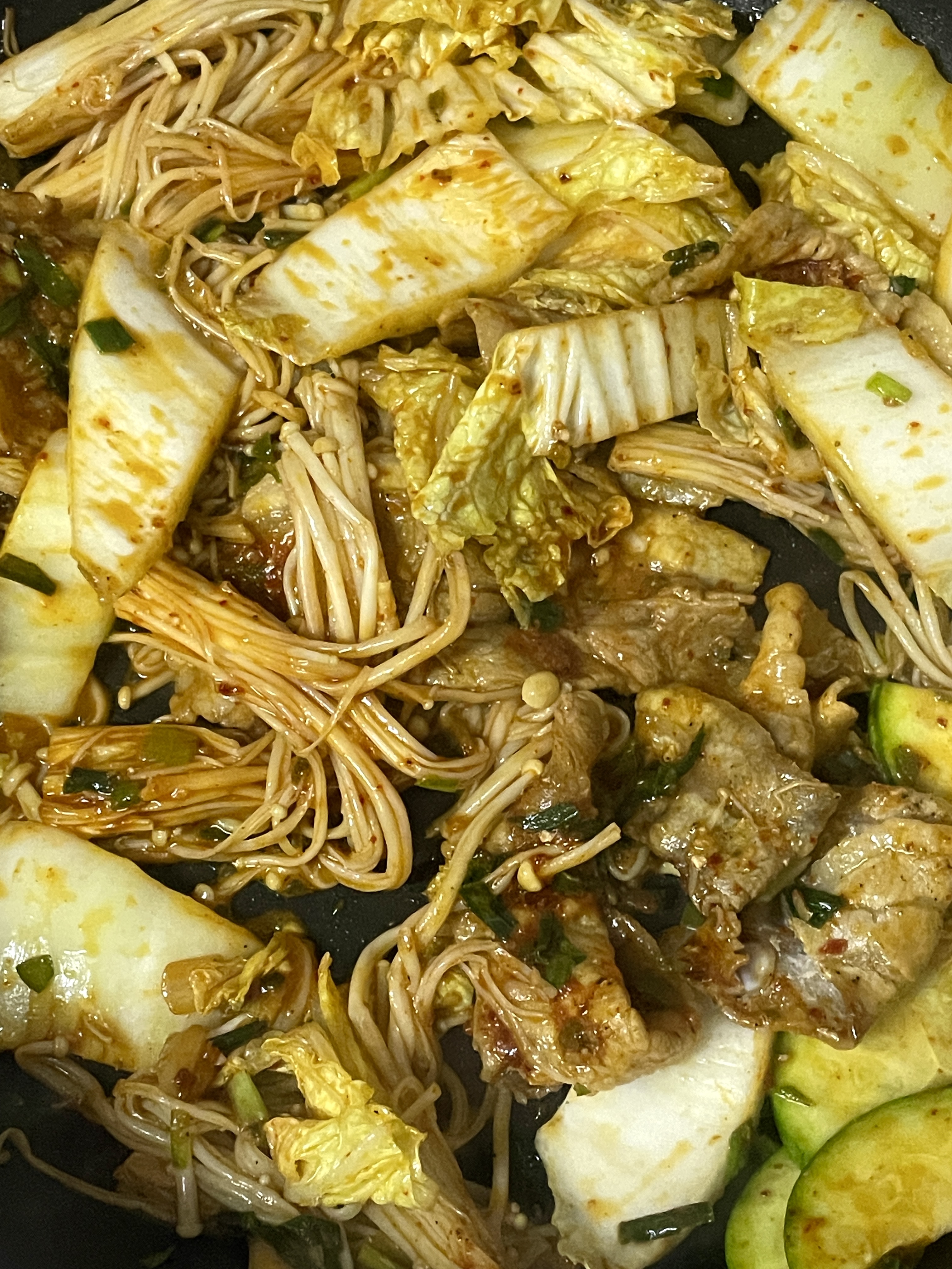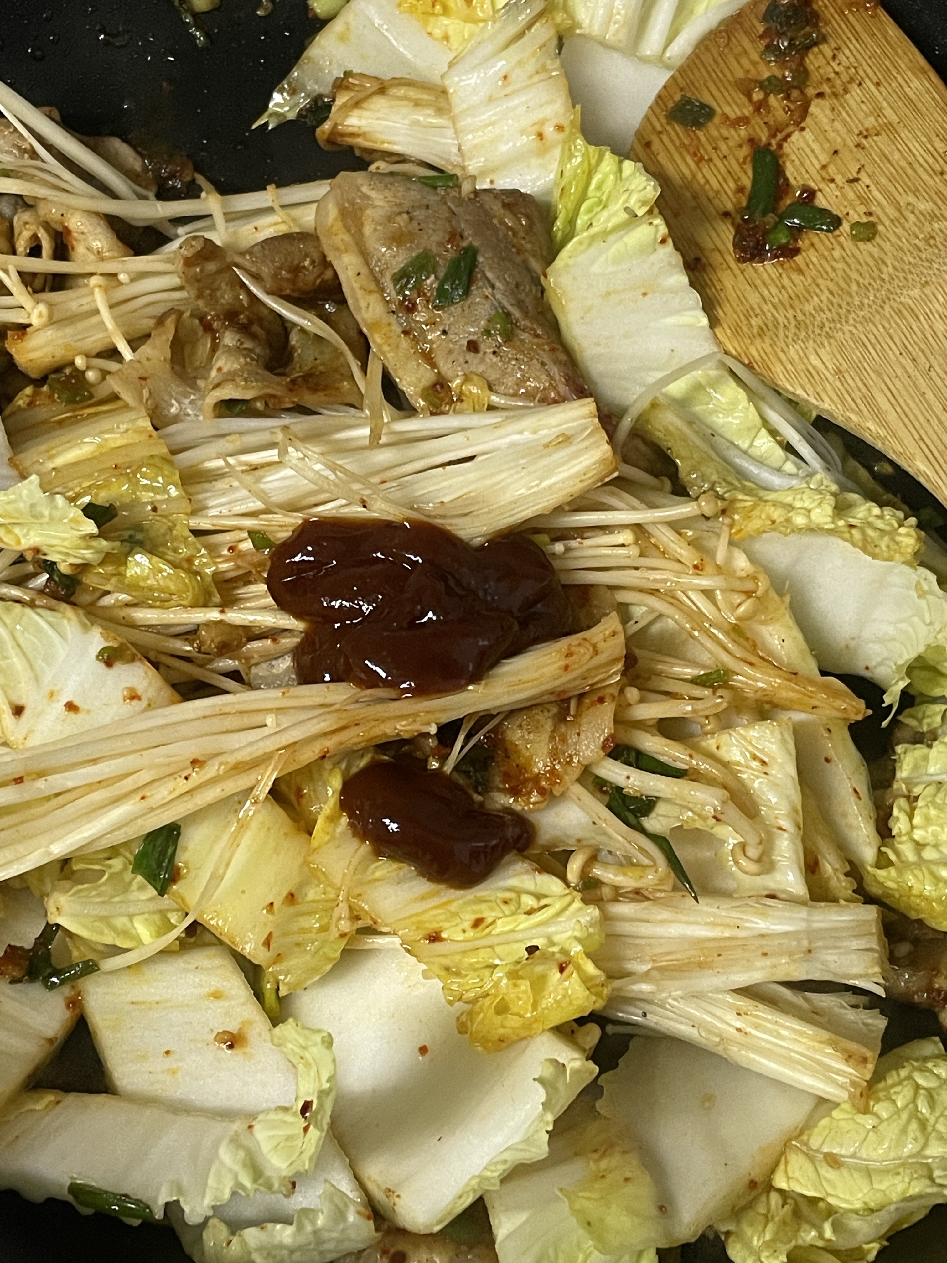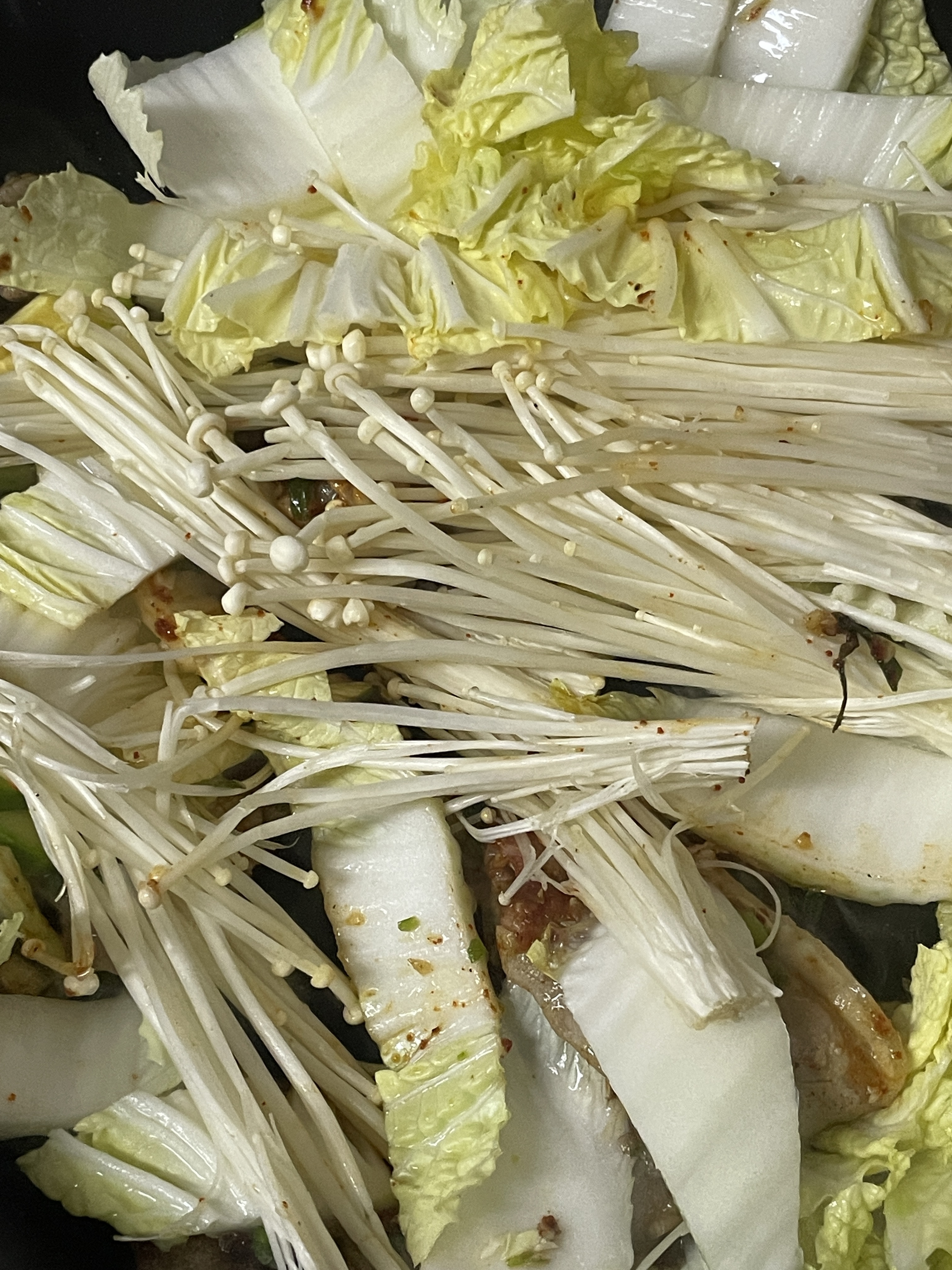 4. 야채들 (알배추랑 팽이버섯) 넣고 볶아줘
