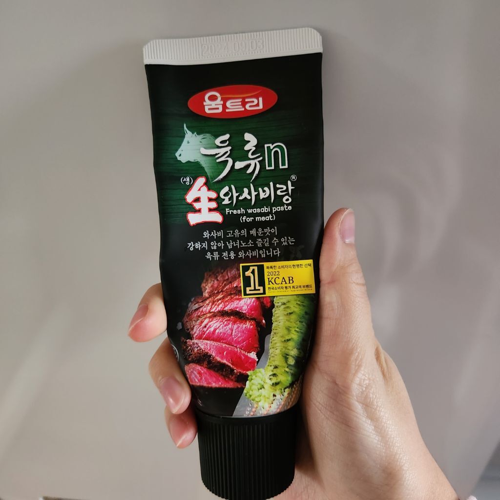저 고추냉이가 약간 달짝지근해서 구운 고기에 올려먹어도 잘어울려 둘 다 마트나 정육점, 동네마트 정육코너에서 살수있을 듯! 난 홈플러스에서 샀어👍🏻