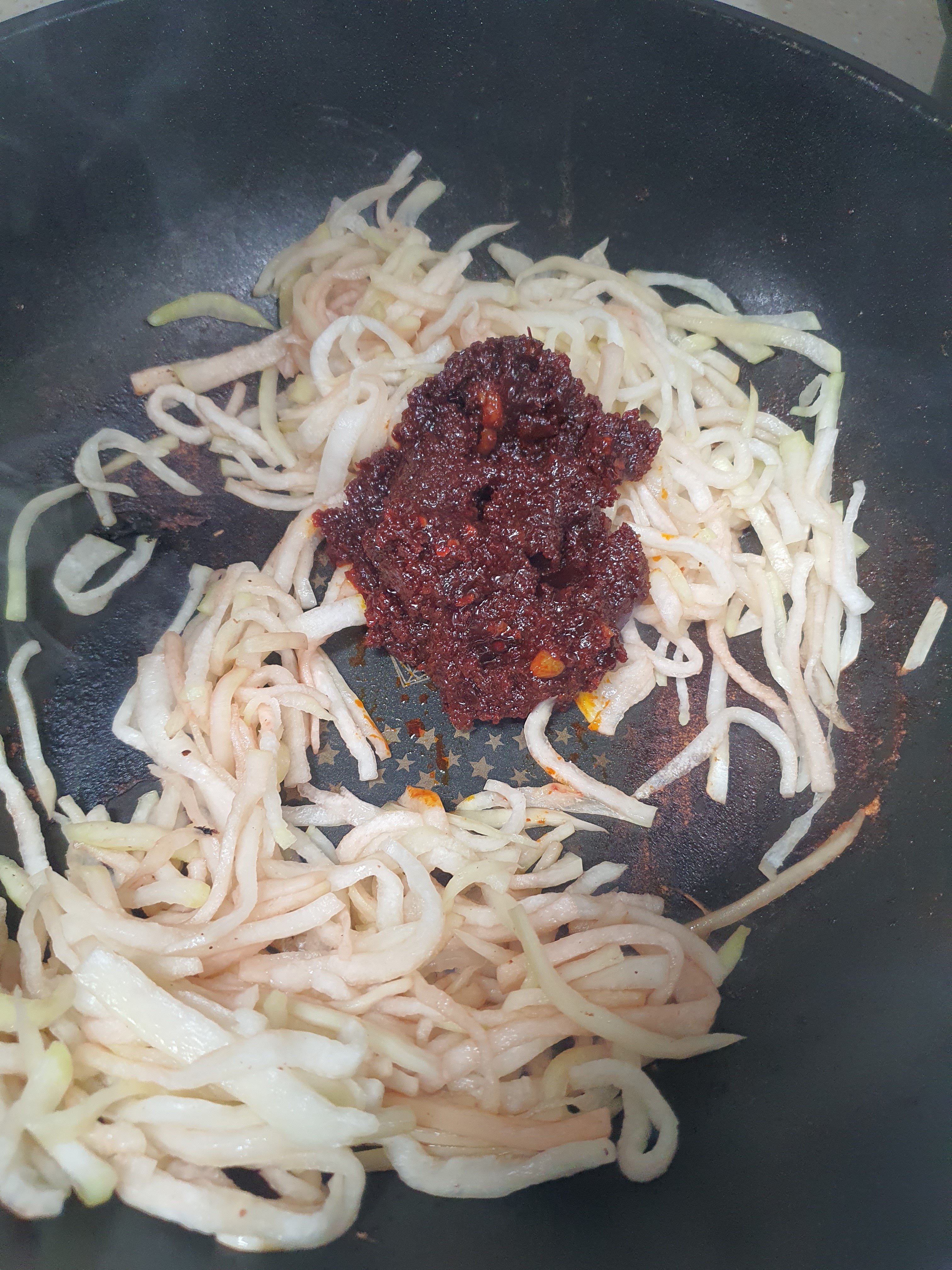 (혹시 무채를 빠르게 못볶아서 양념이 탈거같으면