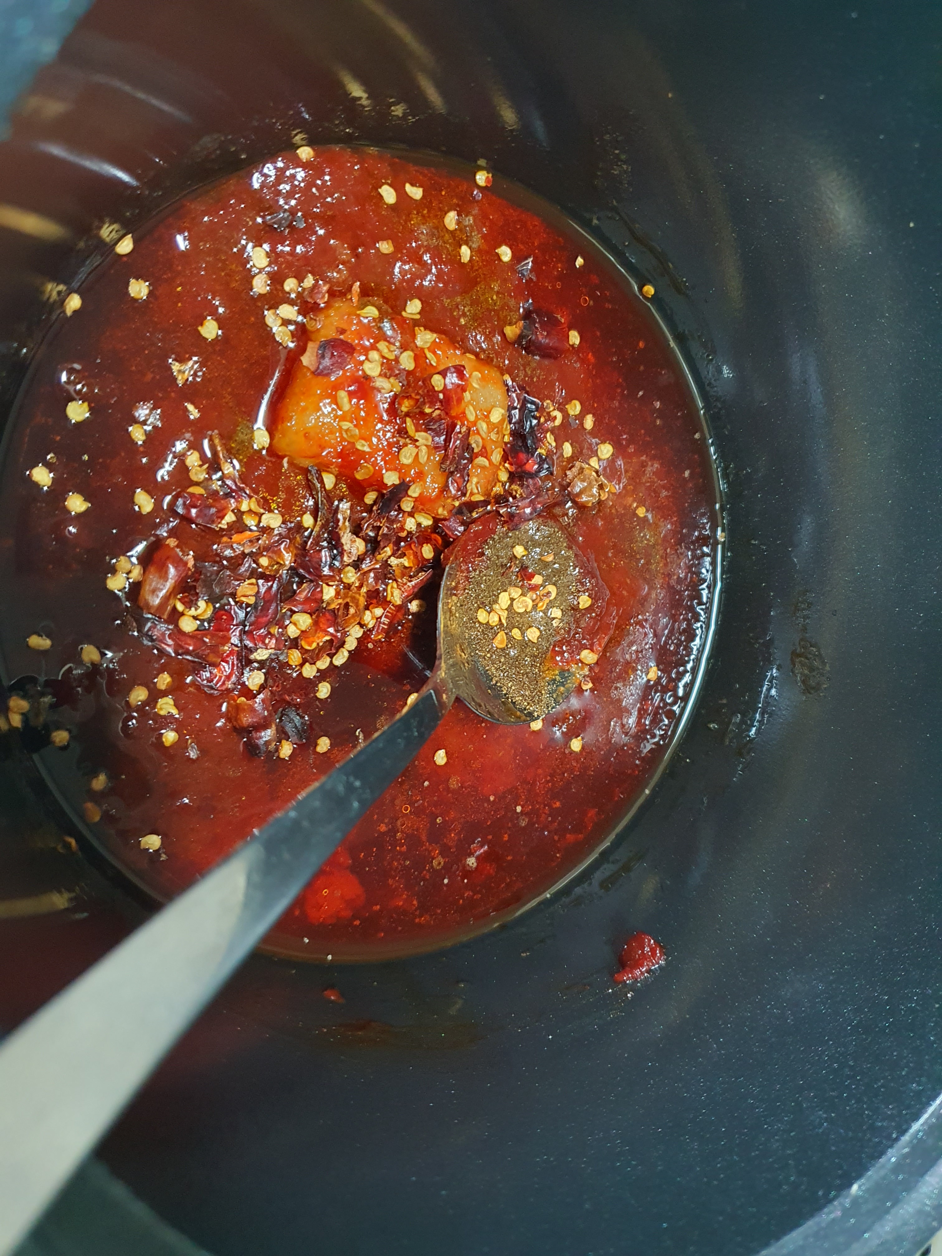 6. 바르르 끓으면 뒤적여주고 매운냄새 올라오면 바로 불꺼주기 (고춧가루탈수잇으니 오래끓이면 써질수있음)