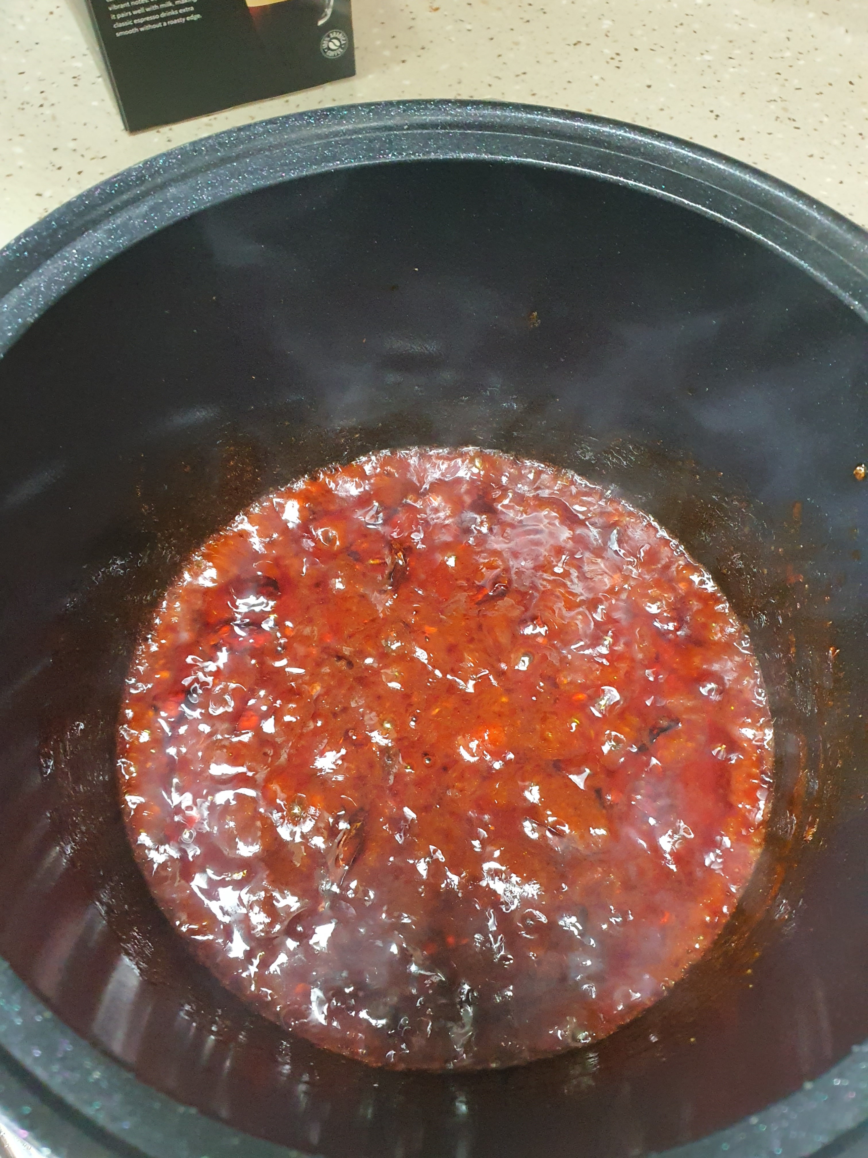 5. 미림(소주)도 식용유도 넣구 볶음양념에 써있는것들 넣어서 중약불로 풀어주고 약불로~~~~