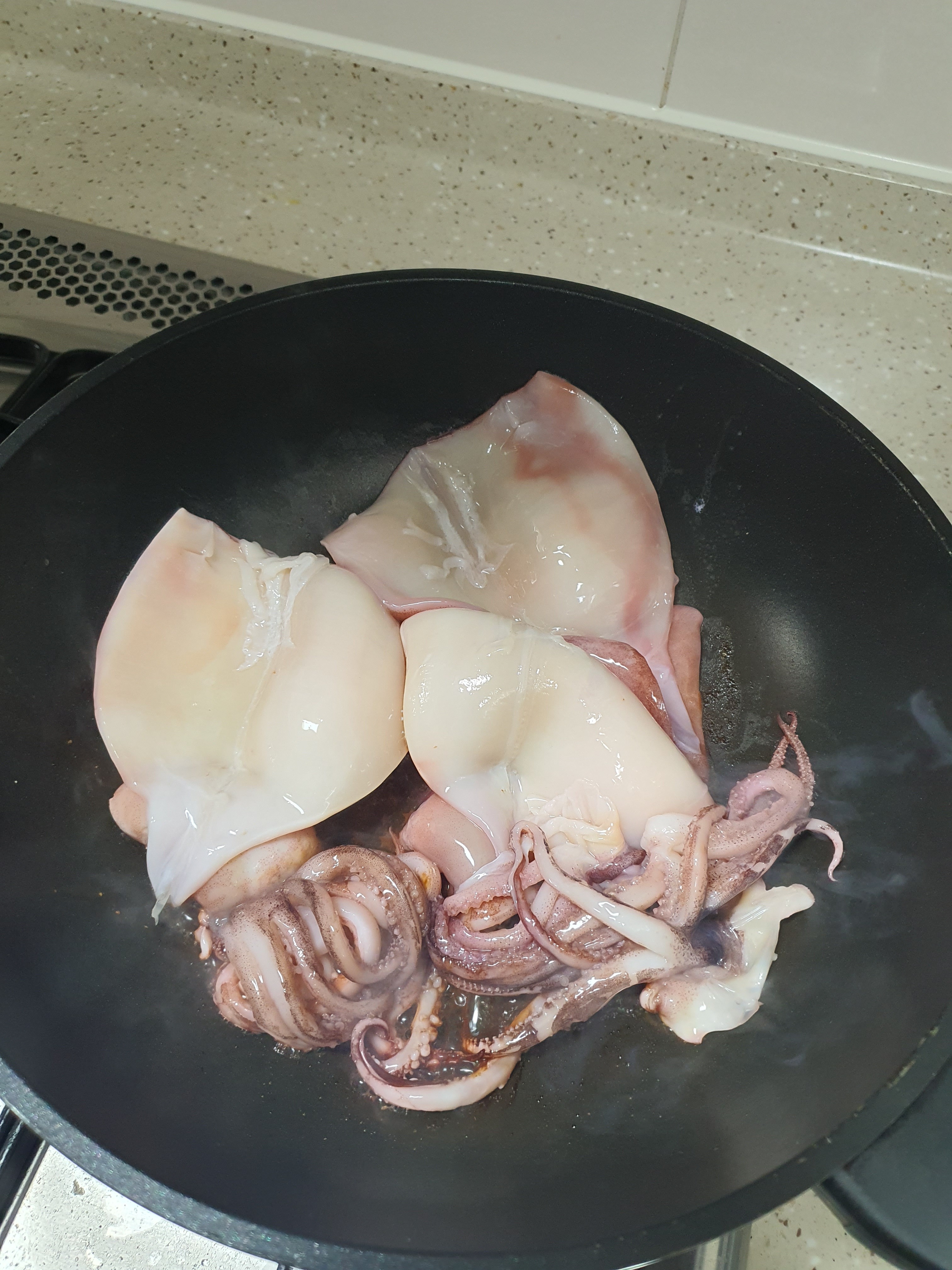 당일에 오징어굽고 양념에 볶아 내기만 하면 10분컷 뚝딱