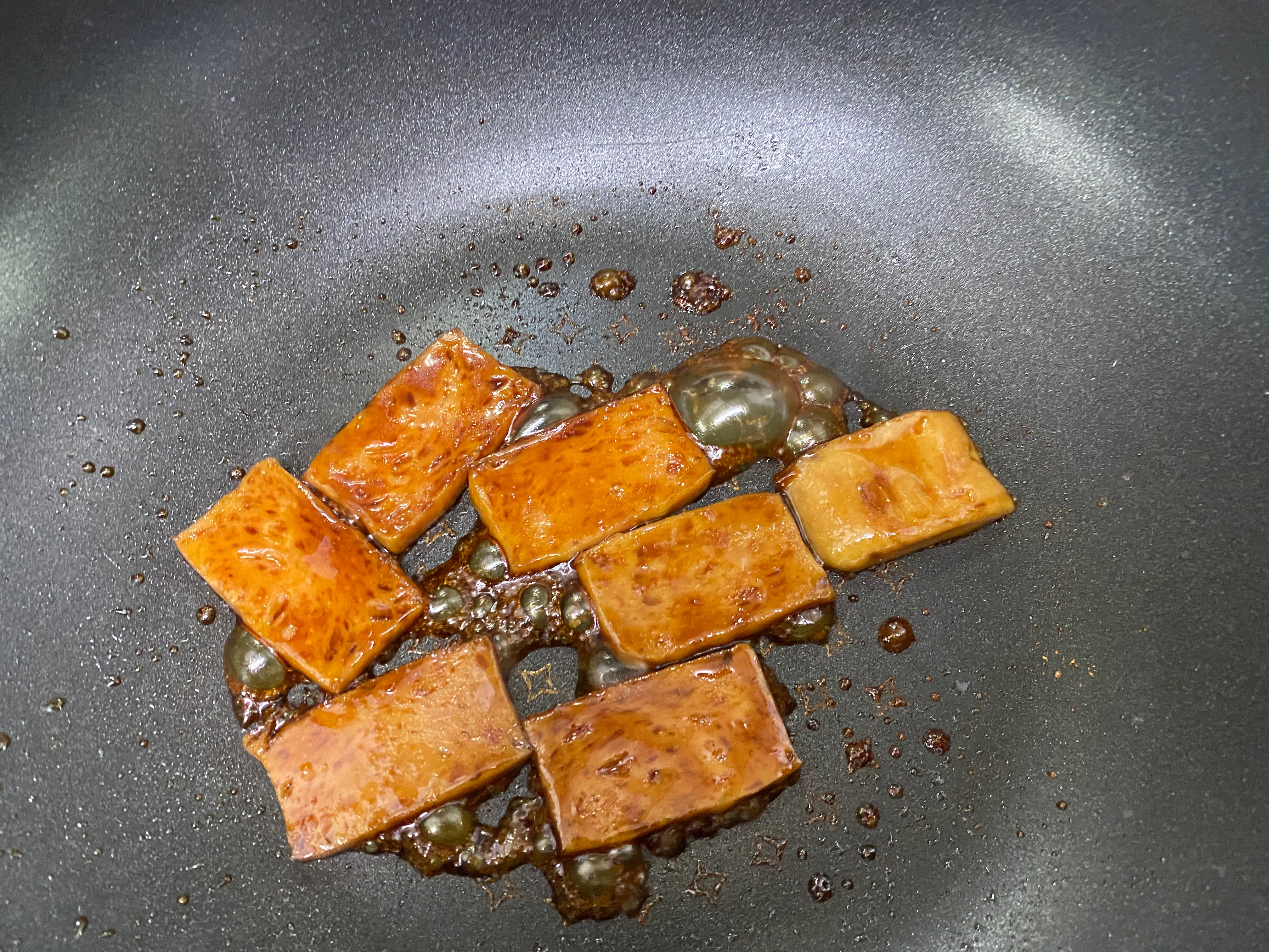 스팸을 살짝 굽다가 설탕 간장 물2숟갈을 대충 던져넣고 약불로 졸여!