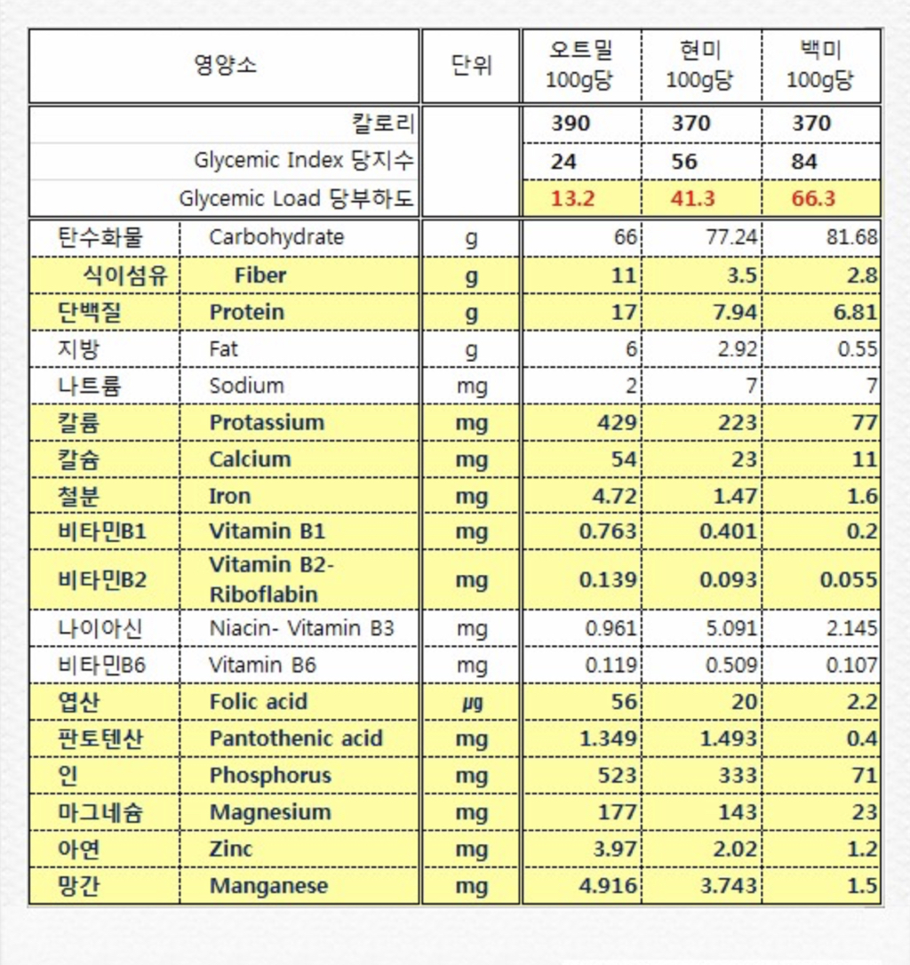 주의할것은 인스턴트/퀵오트는 오히려 혈당지수 높아ㅜ
