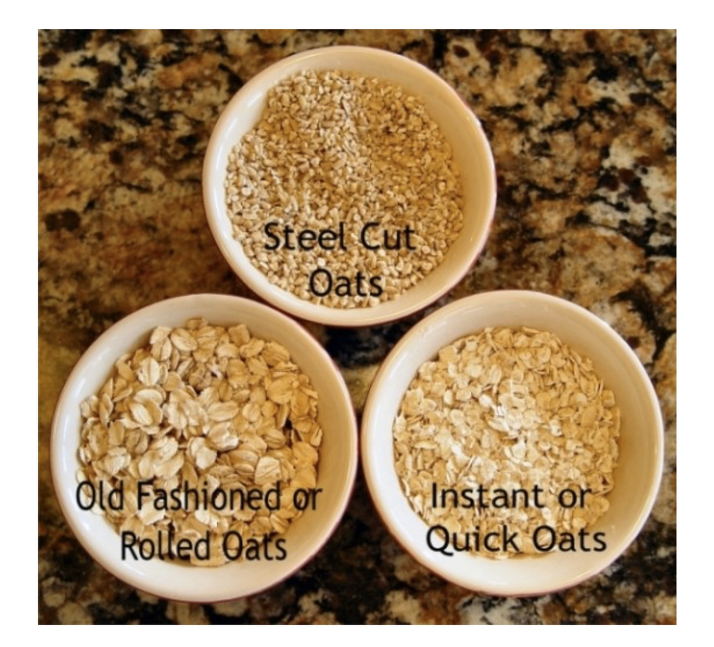 스틸컷 < 압착귀리 (rolled oats) < 인스턴트 오트