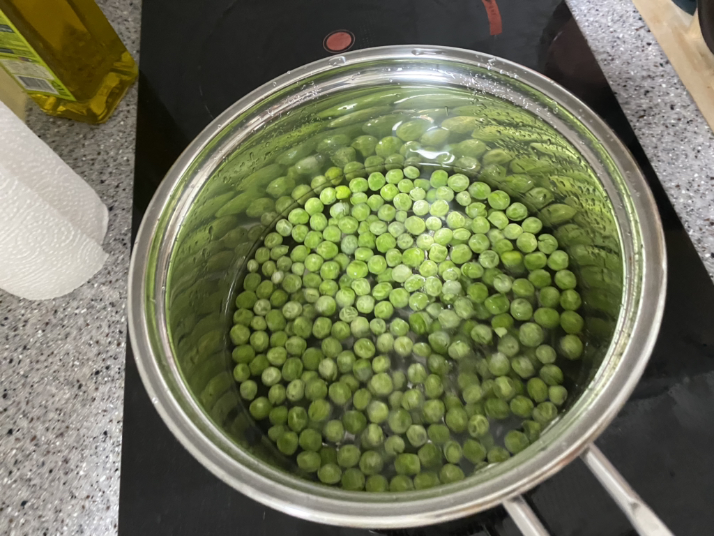 그러면 불을 끄고 완두콩을 건져줘 ❗️이때 주의🔥 물 다 버리면 안돼ㅠ 완두콩이 다시 쭈그렁탱이가 된다구!! 물을 조금은 남겨줘!! 큰숟가락 두숟갈정도...?